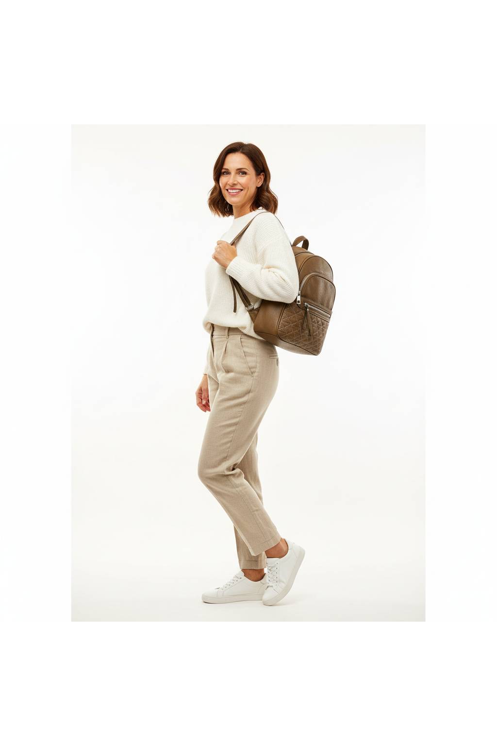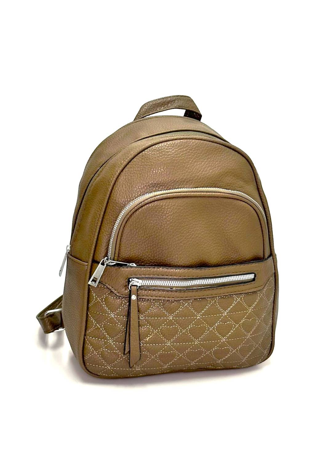 Praktický batoh do města i do práce, který zvládne celý den – od dojíždění až po odpolední pochůzky. Měkká strukturovaná eko kůže, kvalitní zipy a prošívaná přední kapsa s decentním vzorem (srdíčka/diamanty dle varianty) dodávají modelu moderní vzhled, který snadno zkombinujete s kabátem, džínami i teniskami.