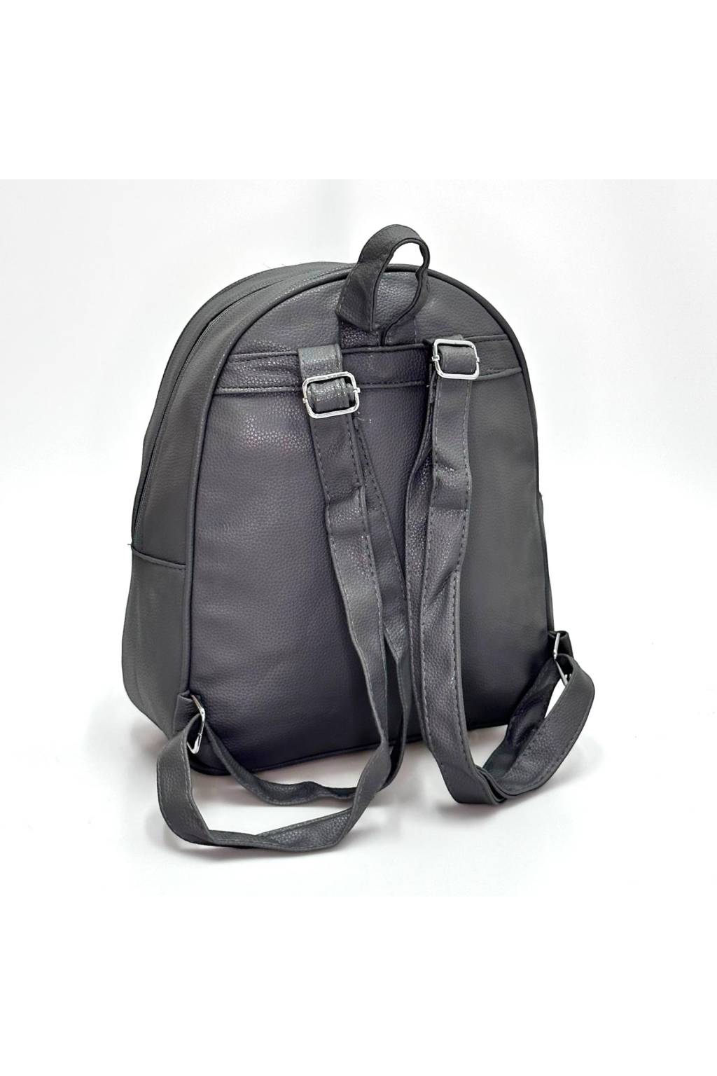 Elegantní vzhled – jemně strukturovaná eko kůže a kovové prvky ve stříbrné barvě.