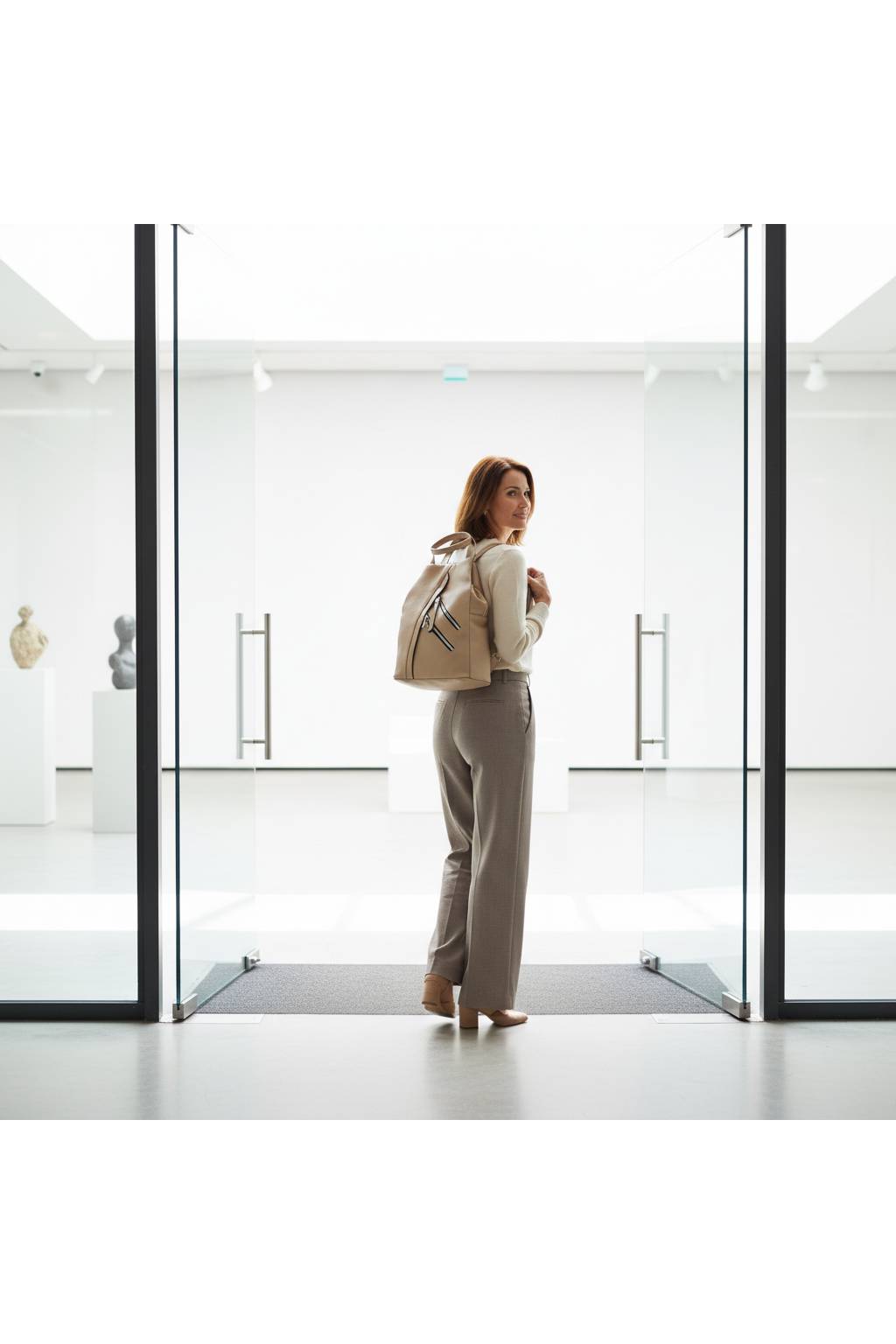 Stylový dámský batoh v univerzální barvě, který doladí business outfit i volnočasové kombinace. Měkký, příjemný povrch s jemnou texturou, kvalitní zipy ve stříbrné barvě a promyšlené členění kapes z něj dělají ideálního parťáka do města, do práce i na výlety.