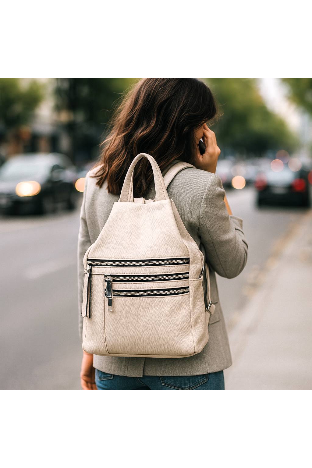 Dámský městský batoh 2v1 – elegantní a praktický ZFQ24 béžový