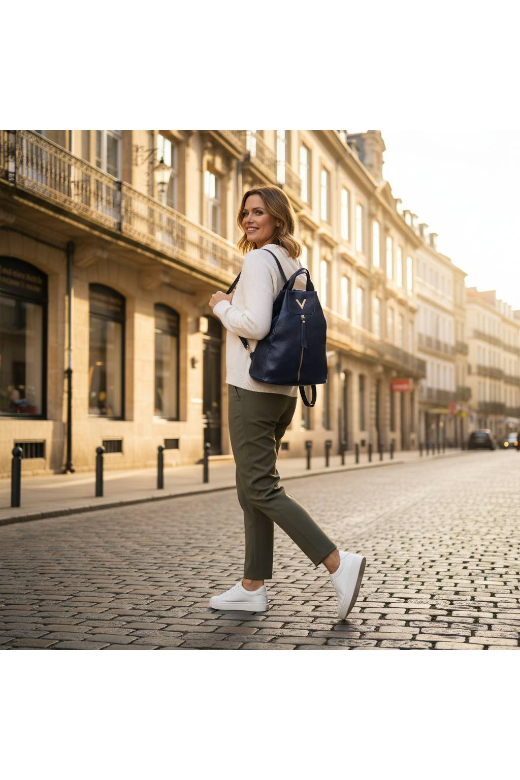 Hledáte doplněk, který je stylový jako kabelka a zároveň praktický jako batoh? Tento dámský batoh-kabelka zaujme moderním „V“ detailem na přední části a čistými liniemi, díky kterým se hodí ke sportovní i elegantnější módě. Ideální volba na každý den – do práce, do města i na výlety.