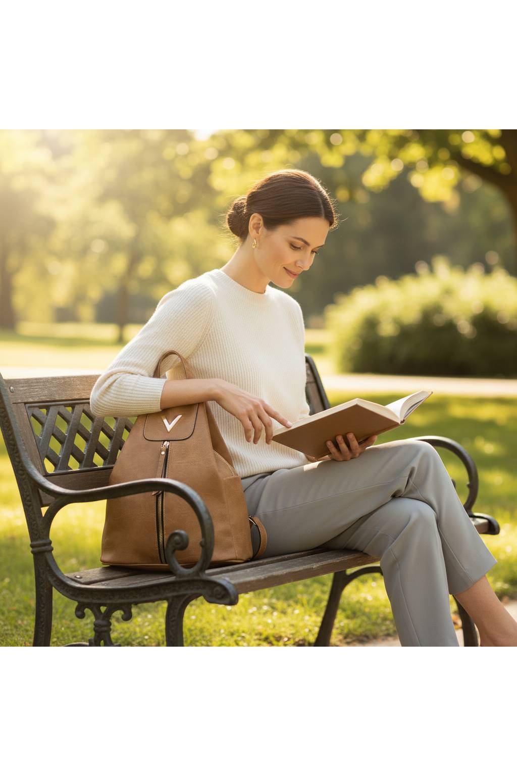 Hledáte doplněk, který je stylový jako kabelka a zároveň praktický jako batoh? Tento dámský batoh-kabelka zaujme moderním „V“ detailem na přední části a čistými liniemi, díky kterým se hodí ke sportovní i elegantnější módě. Ideální volba na každý den – do práce, do města i na výlety.