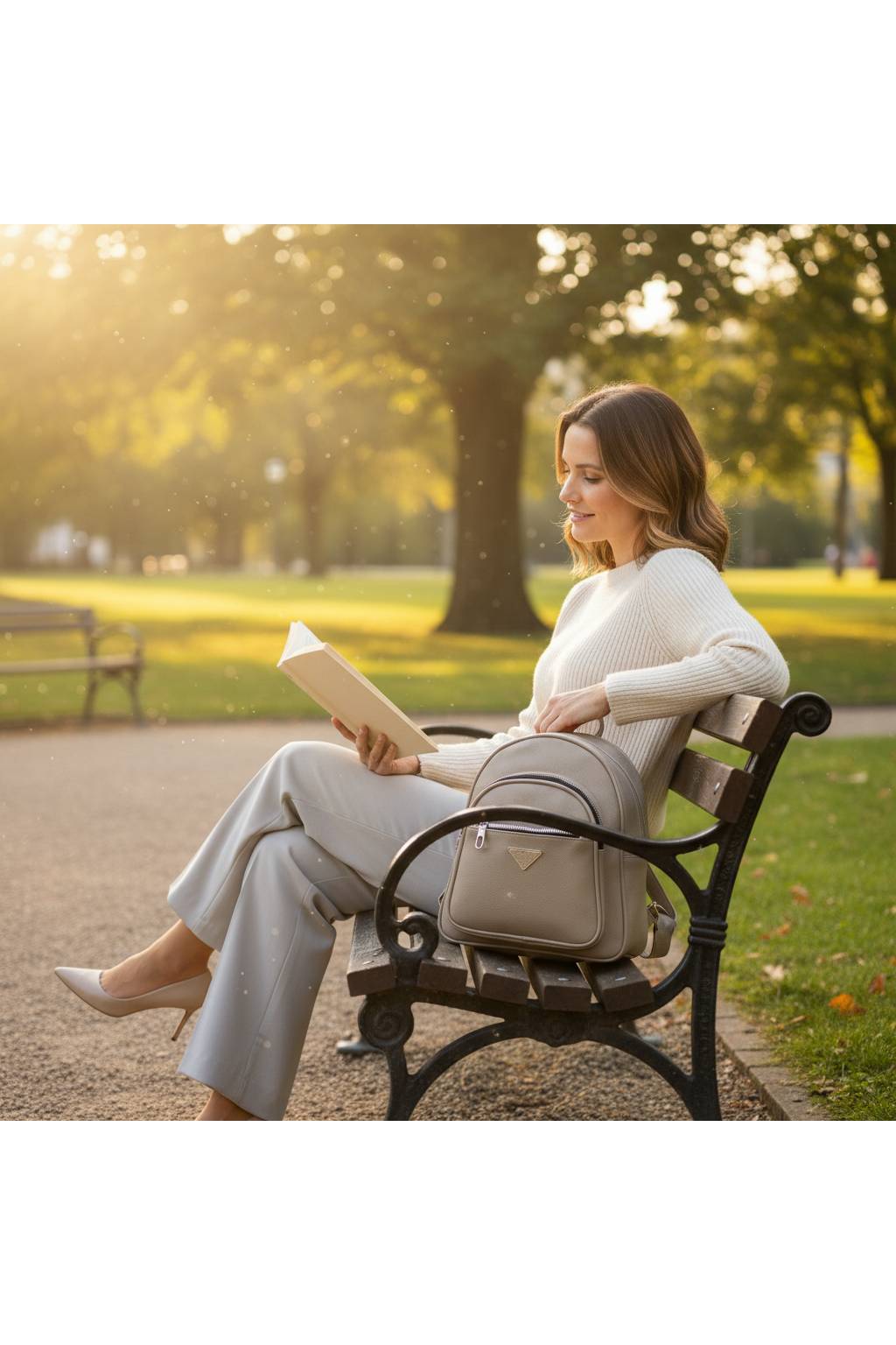 Stylový mini batoh pro ženy, který skvěle drží tvar a pojme vše důležité – mobil, peněženku, klíče, kosmetiku, brýle i láhev 0,5 l. Ideální do města, na výlety, festivaly i každodenní nošení.