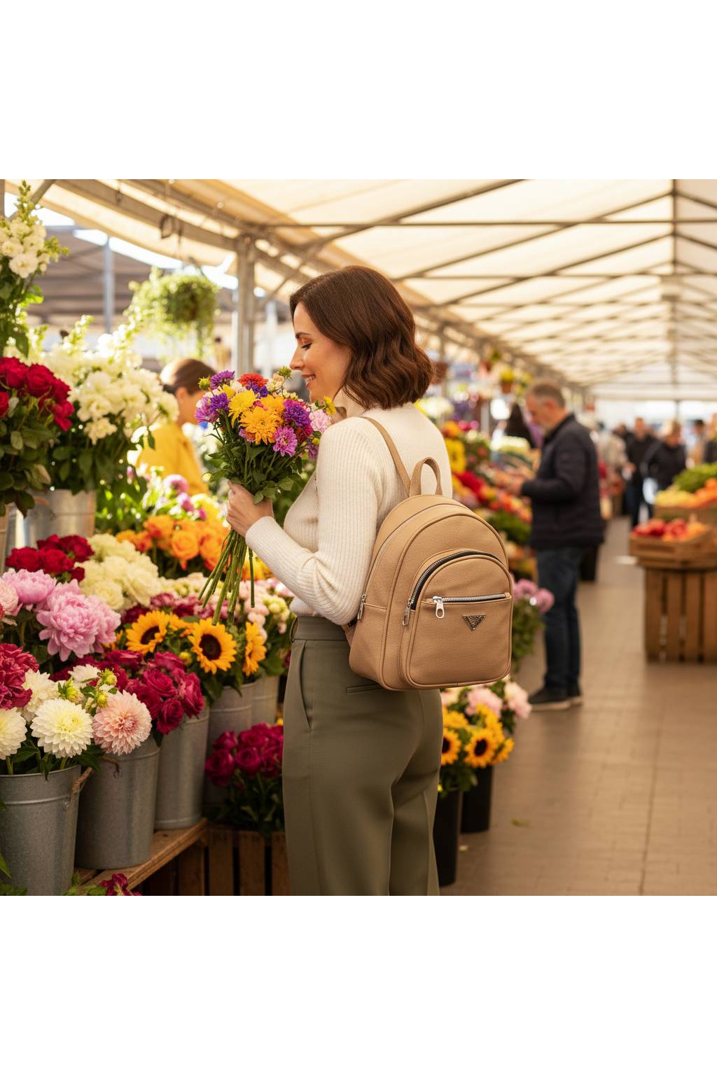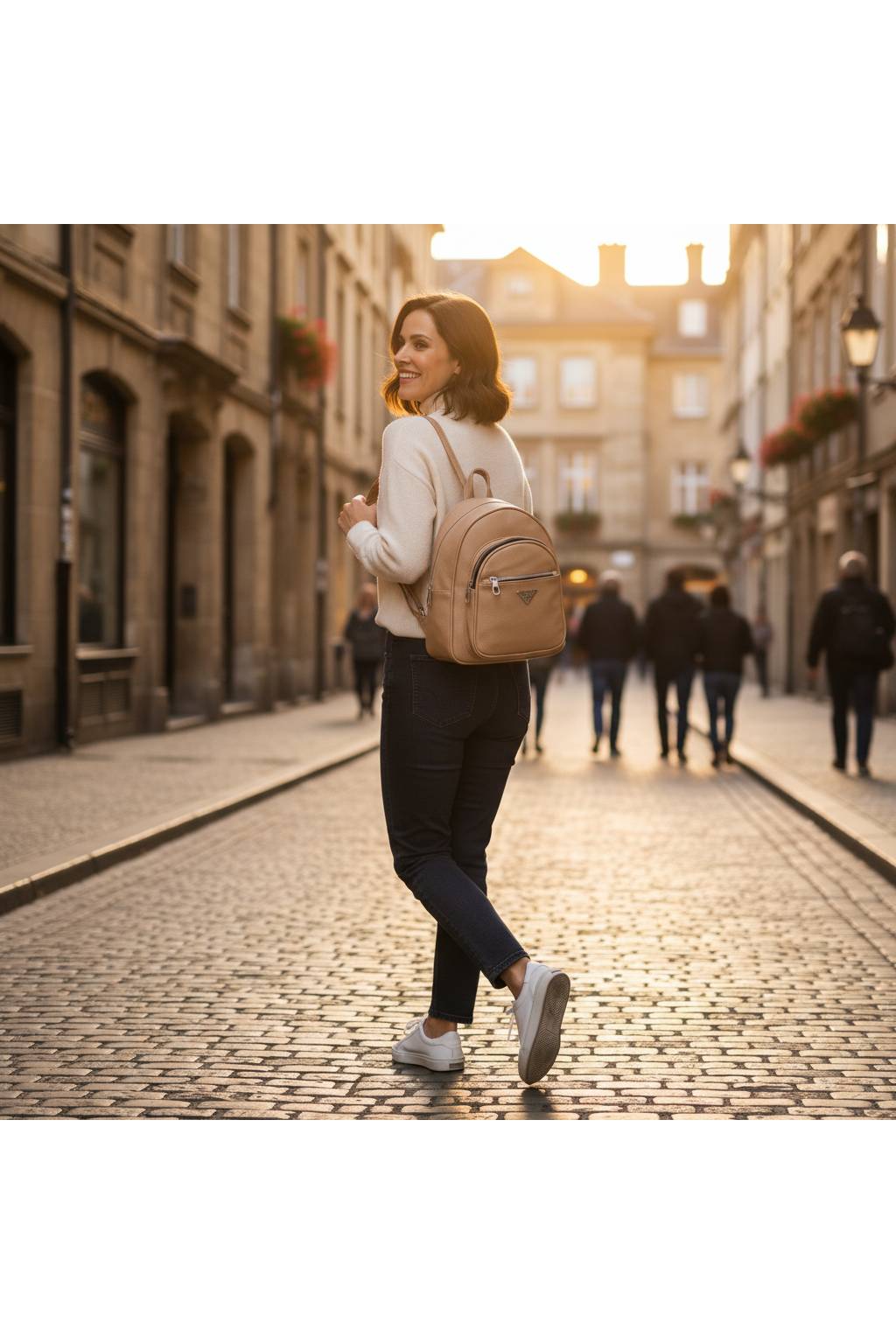 Stylový mini batoh pro ženy, který skvěle drží tvar a pojme vše důležité – mobil, peněženku, klíče, kosmetiku, brýle i láhev 0,5 l. Ideální do města, na výlety, festivaly i každodenní nošení.