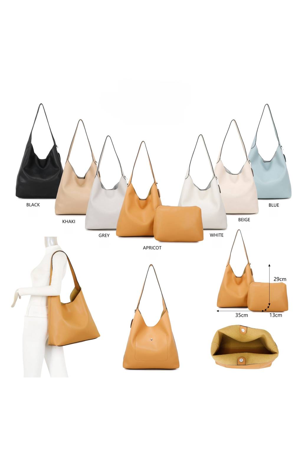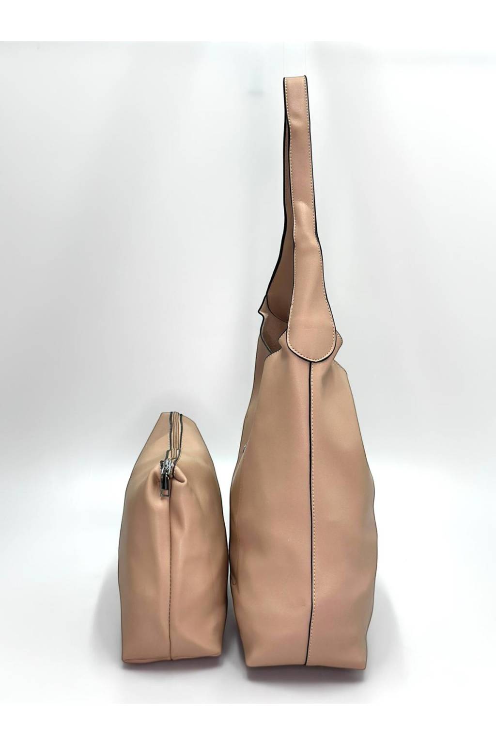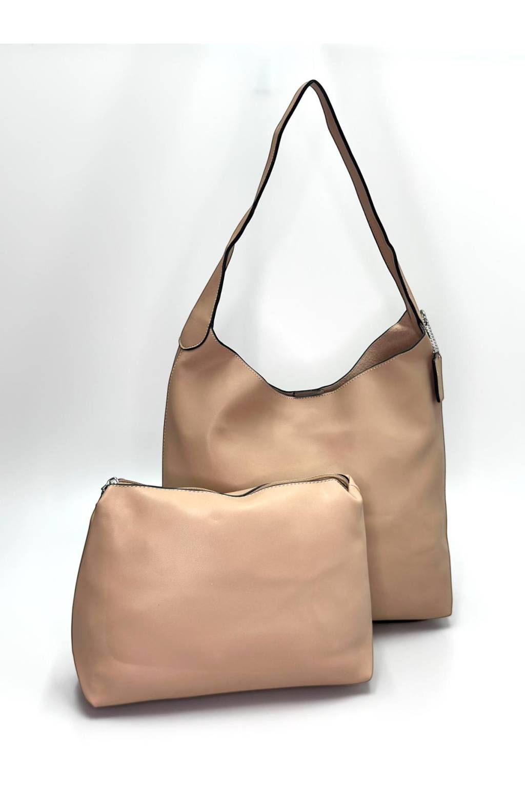 Kabelka je příjemně prostorná, takže bez problémů pojme vše potřebné – peněženku, mobil, klíče, kosmetiku i drobnosti. Bonus navíc je samostatné pouzdro, které pomůže udržet pořádek (na make-up, doklady nebo nabíječku). Díky pohodlnému uchu skvěle sedí na rameni a působí elegantně i k běžnému outfitu.