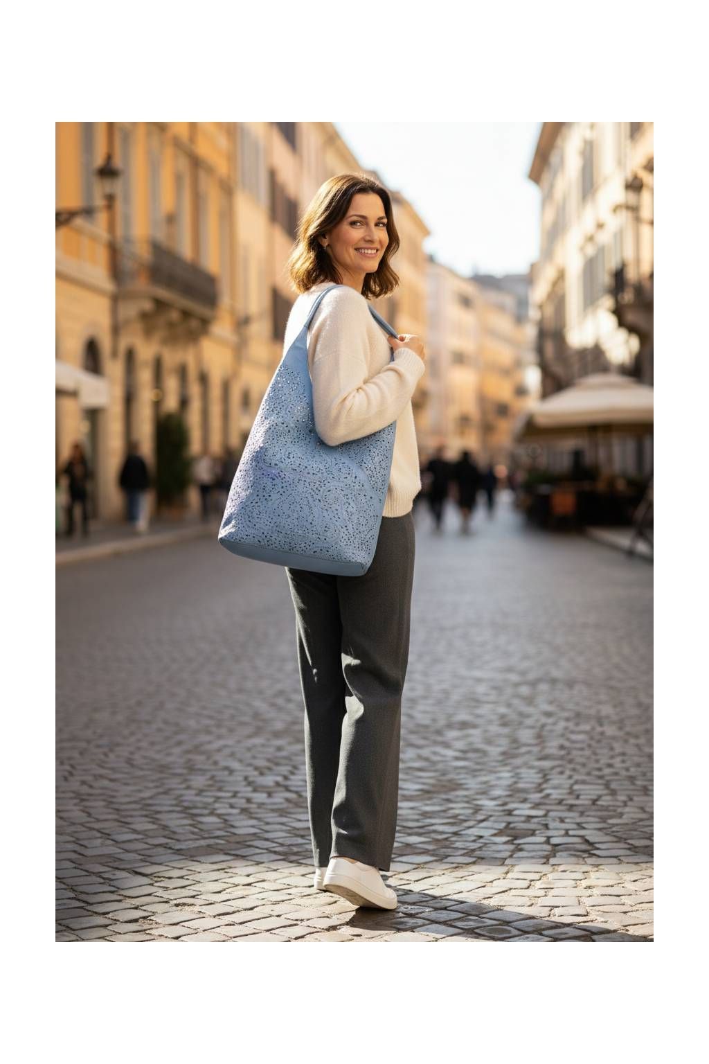 Hledáte kabelku, která vypadá elegantně, je pohodlná na nošení a zároveň praktická na každý den? Tahle dámská kabelka ve stylu hobo zaujme moderním perforovaným (vyřezávaným) vzorem, který působí jemně a nadčasově – v každé barevné variantě vypadá skvěle.
