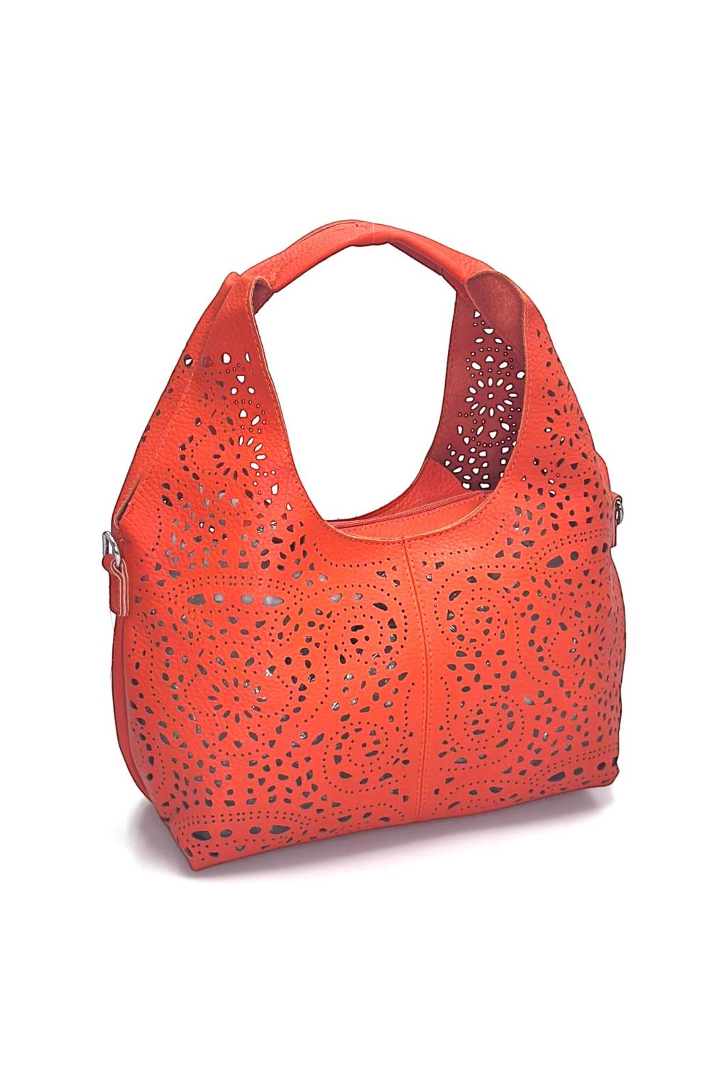 Stylová dámská kabelka, která zaujme na první pohled – elegantní vyřezávaný (laserový) vzor jí dodává lehkost a prémiový vzhled, takže se skvěle hodí do města, do práce i na volný čas. Praktické provedení 2v1 ocení každá žena, která chce mít věci přehledně uspořádané – uvnitř se nachází samostatná vyjímatelná taštička, která ochrání vaše drobnosti a zároveň usnadní organizaci.