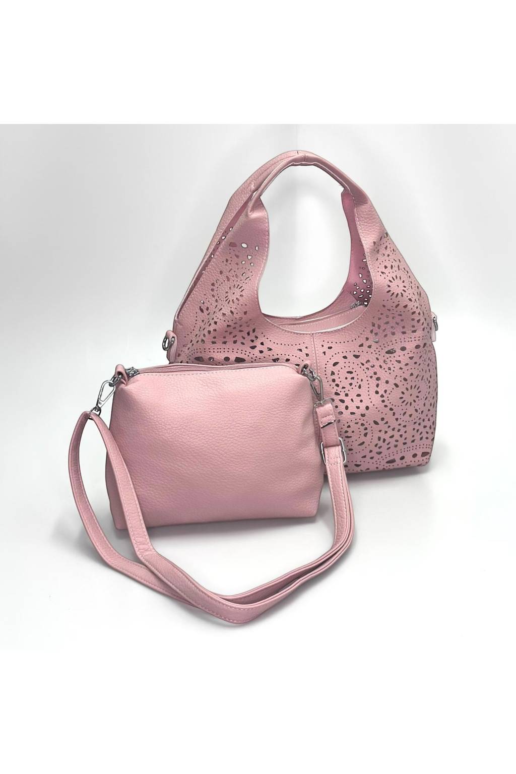 Dámský set kabelek s vyřezávaným vzorem 25267 světle růžový