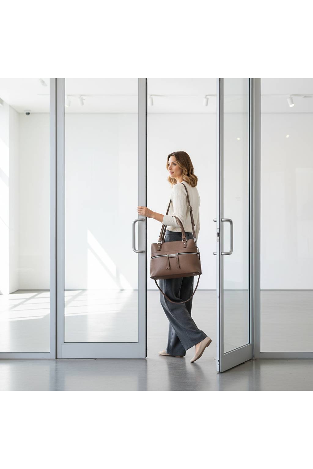 • Elegantní tvar shopperky – drží linii, zároveň je měkká a pohodlná na nošení.