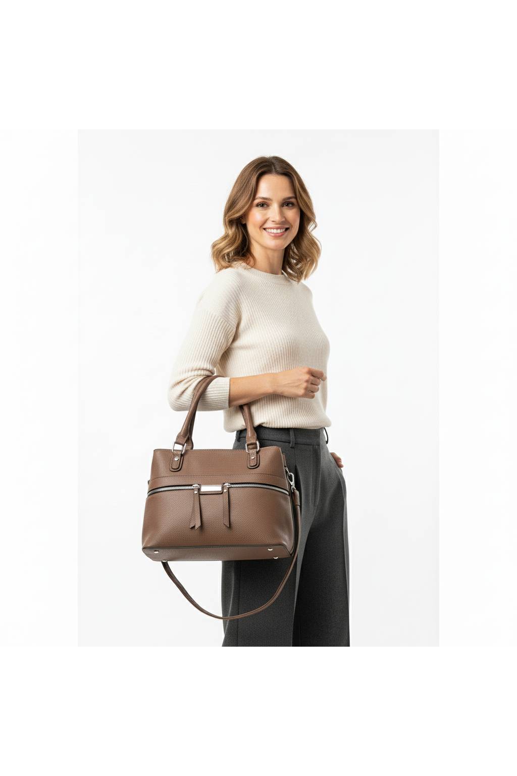 Stylová dámská kabelka 6161 v klasickém odstínu je jako stvořená pro každodenní nošení do práce, do města i na schůzky. Tělo je z kvalitní eko kůže s jemnou strukturou, která se snadno udržuje a pěkně drží tvar.