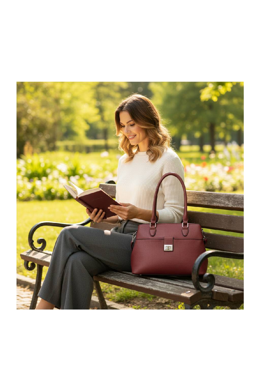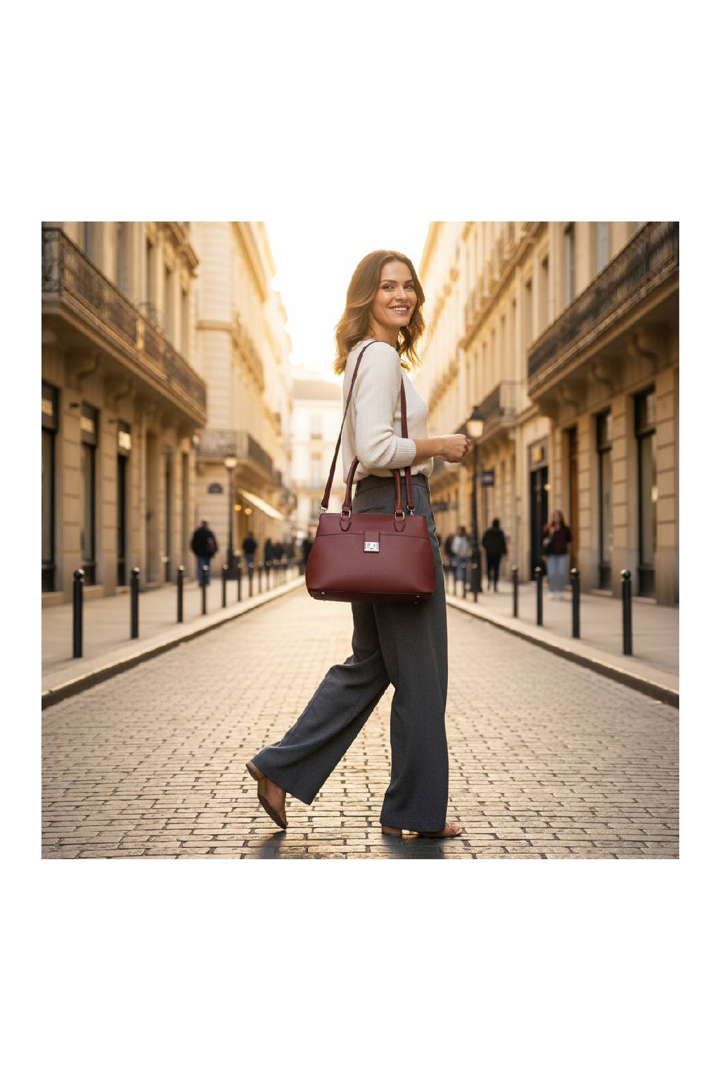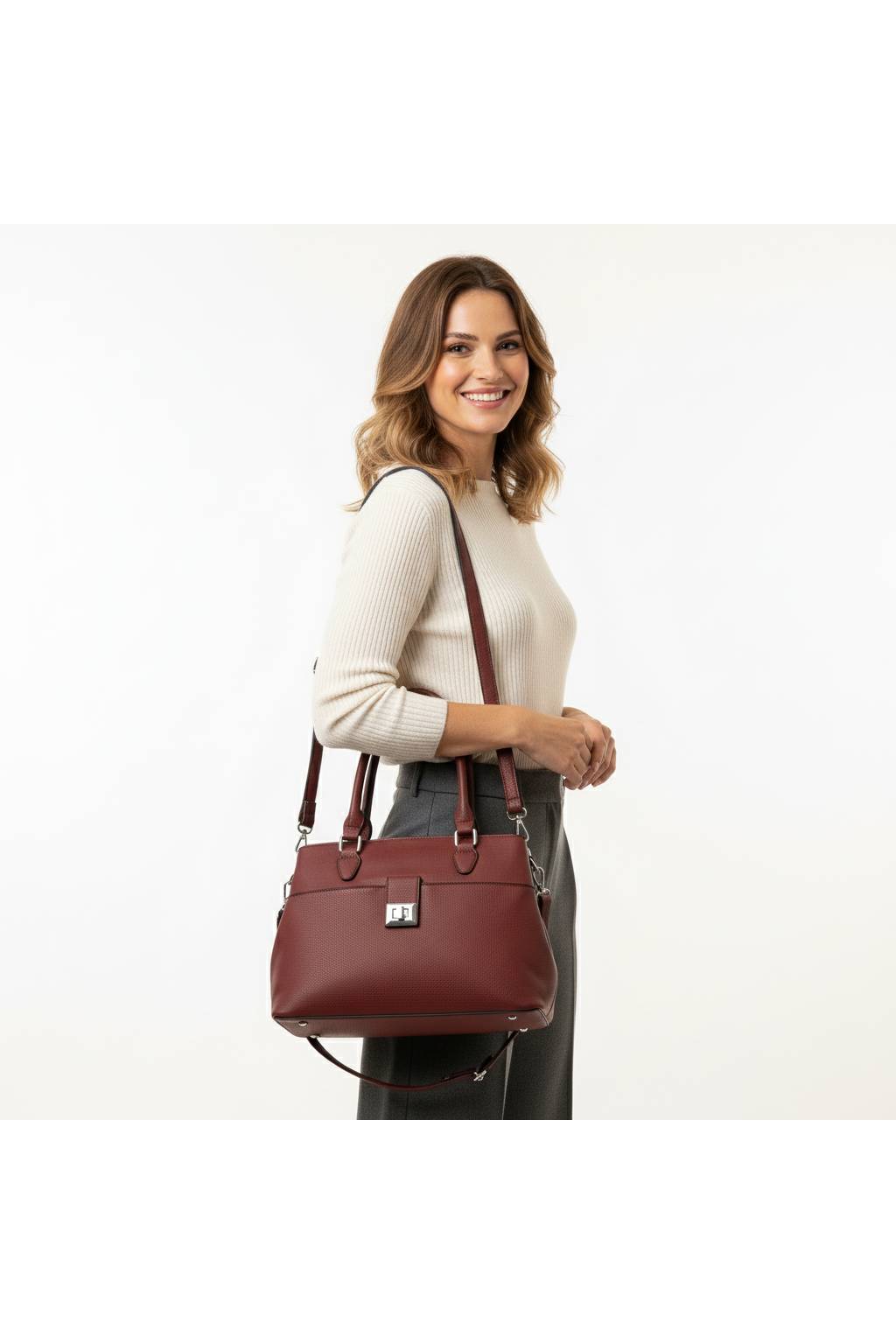 • 2 způsoby nošení – pevná dvojitá ucha do ruky/na předloktí a odnímatelný nastavitelný popruh na rameno či crossbody.