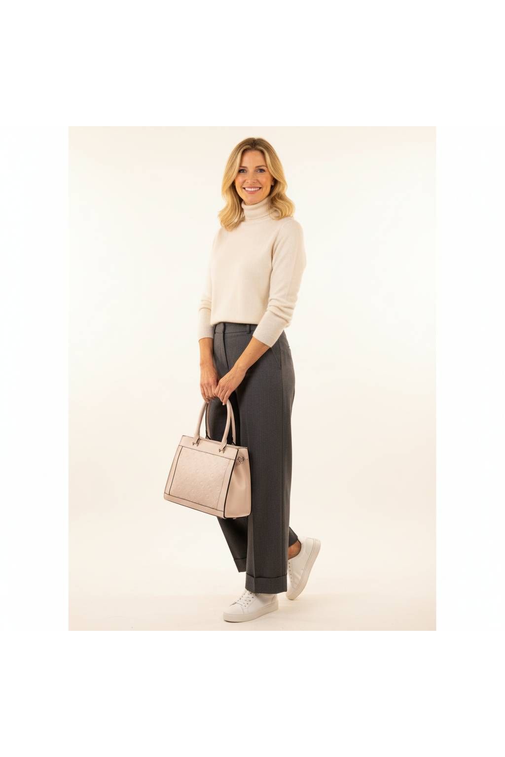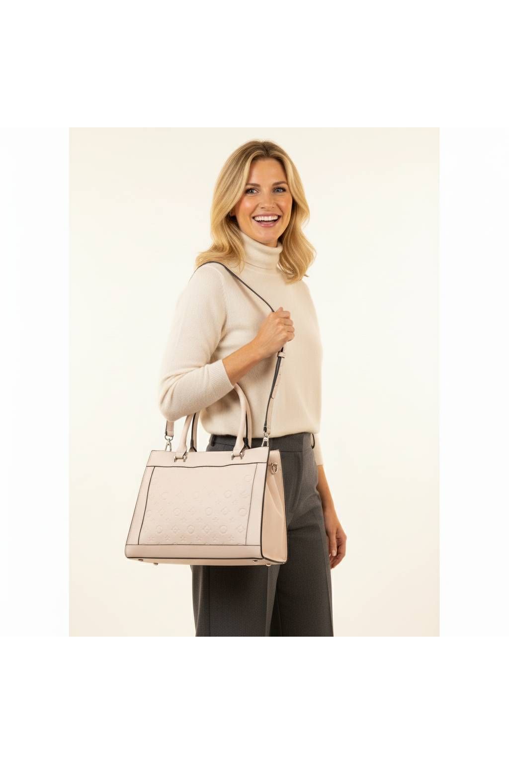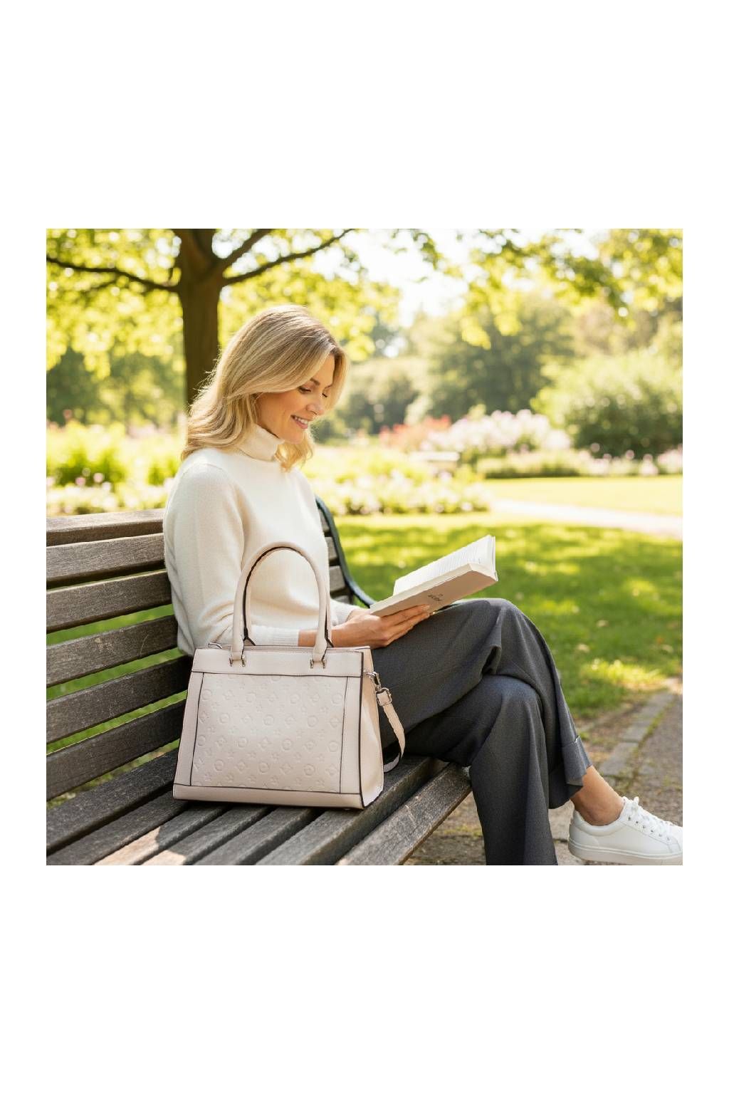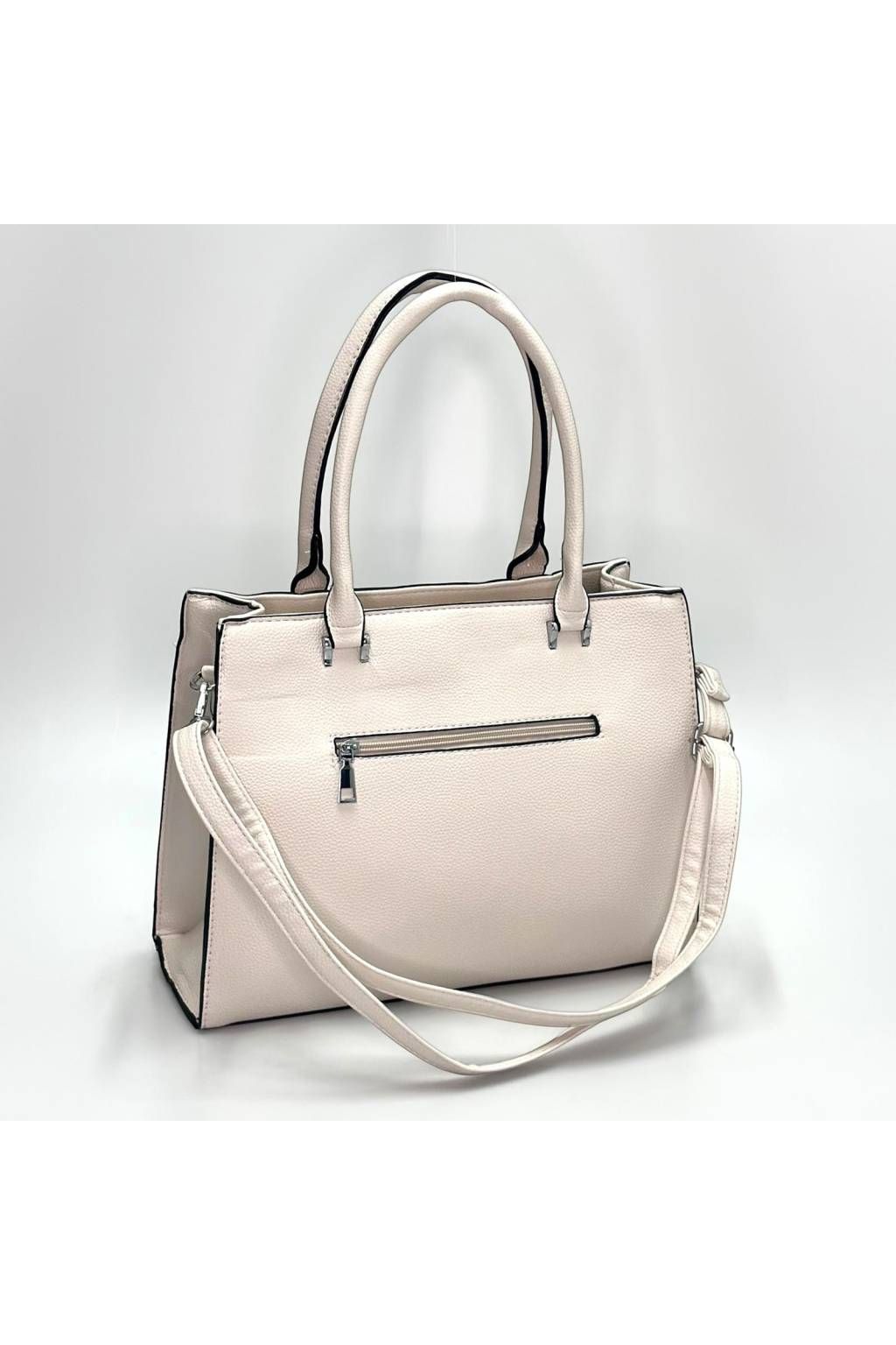 Kabelku můžete pohodlně nosit v ruce, na předloktí i přes rameno díky dlouhému odnímatelnému popruhu. Vnitřní prostor je prakticky členěný, takže si snadno uspořádáte peněženku, mobil, klíče, kosmetiku i další drobnosti. Díky své velikosti nabídne dostatek místa, a přitom si zachovává elegantní vzhled.