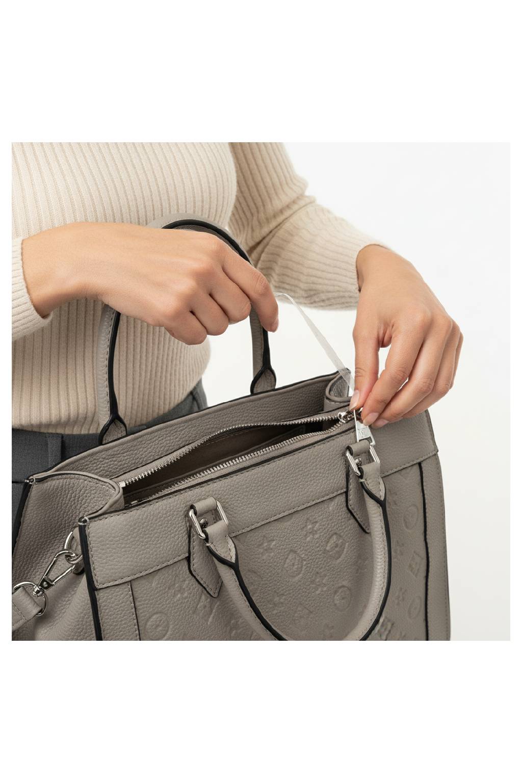 Kabelku můžete pohodlně nosit v ruce, na předloktí i přes rameno díky dlouhému odnímatelnému popruhu. Vnitřní prostor je prakticky členěný, takže si snadno uspořádáte peněženku, mobil, klíče, kosmetiku i další drobnosti. Díky své velikosti nabídne dostatek místa, a přitom si zachovává elegantní vzhled.