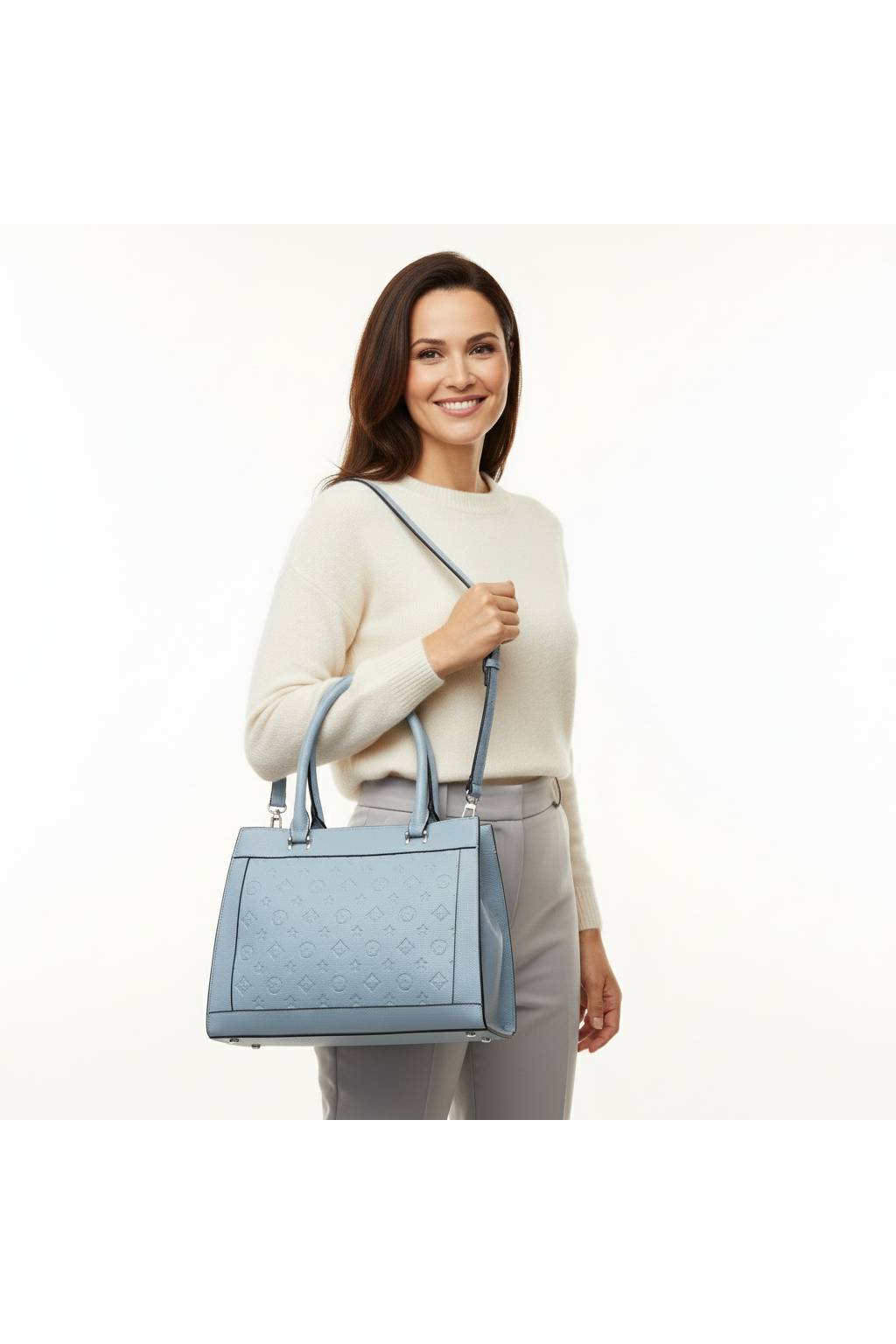 Tato dámská kabelka je ideální volbou pro ženy, které hledají spojení elegance, praktičnosti a nadčasového stylu. Díky pevnému tvaru působí upraveně a luxusně, zatímco jemný reliéfní vzor na přední straně dodává kabelce stylový detail, který zaujme na první pohled. Skvěle se hodí do práce, do města, na schůzky i na běžné každodenní nošení.