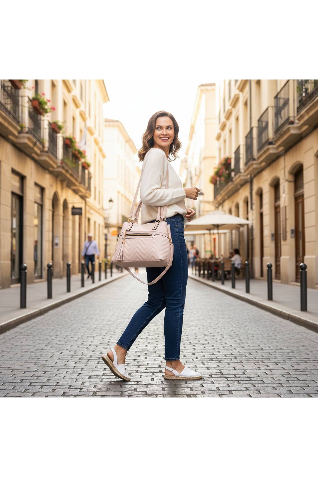 2 způsoby nošení: pevná ucha do ruky/na rameno + odnímatelný nastavitelný popruh přes tělo.