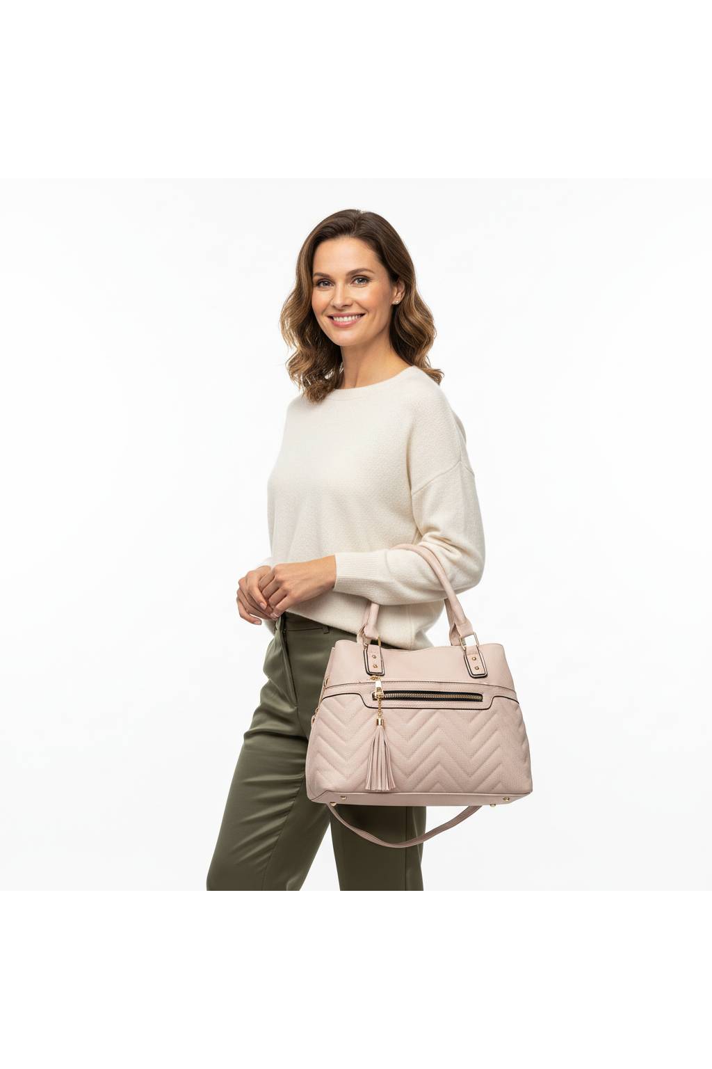 Elegantní městská kabelka s čistými liniemi a ozdobným třásněm, která dobře drží tvar a nosí se pohodlně na rameni i crossbody. Univerzální model na každý den – do práce, na kávu i na nákupy.