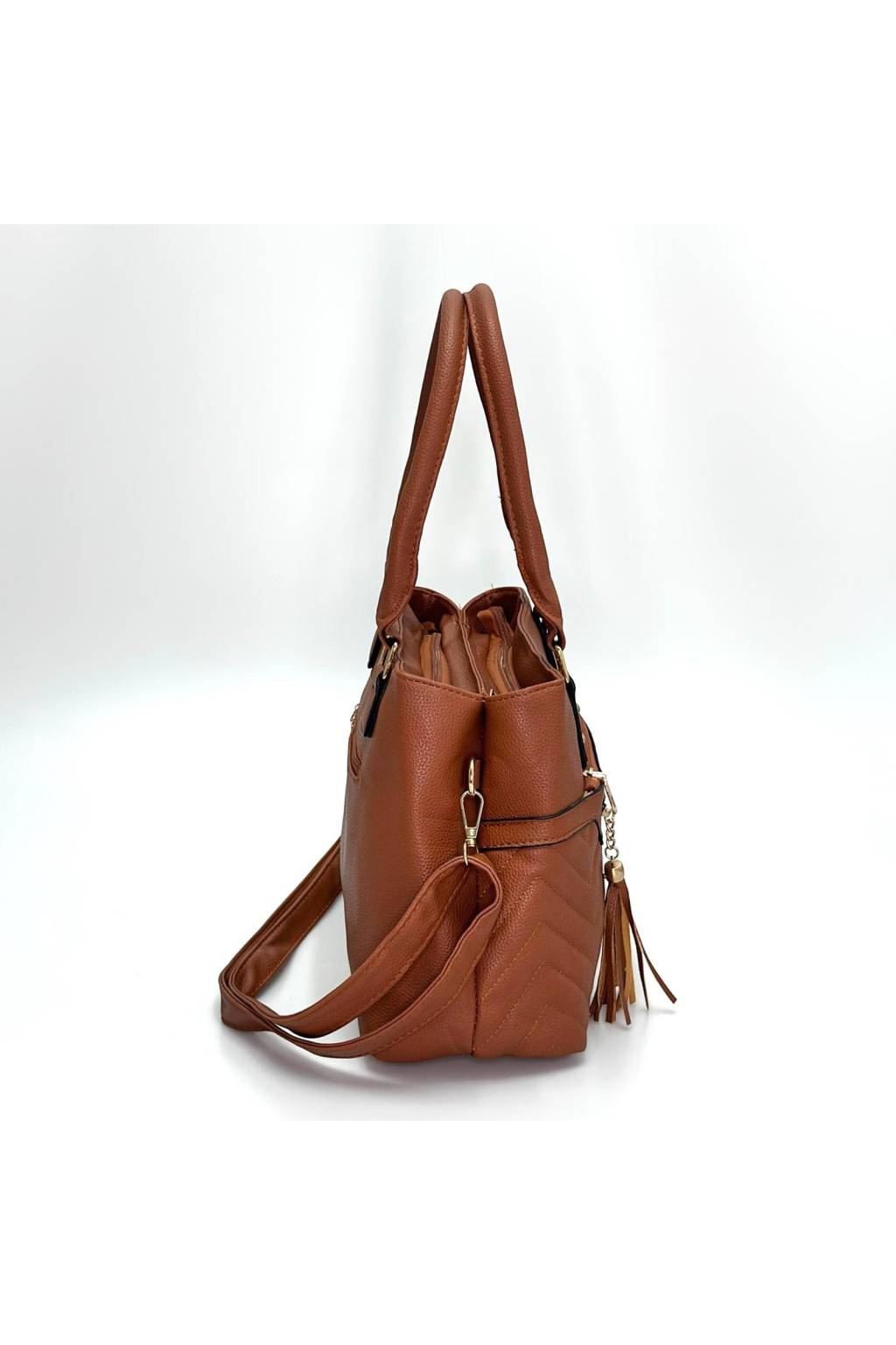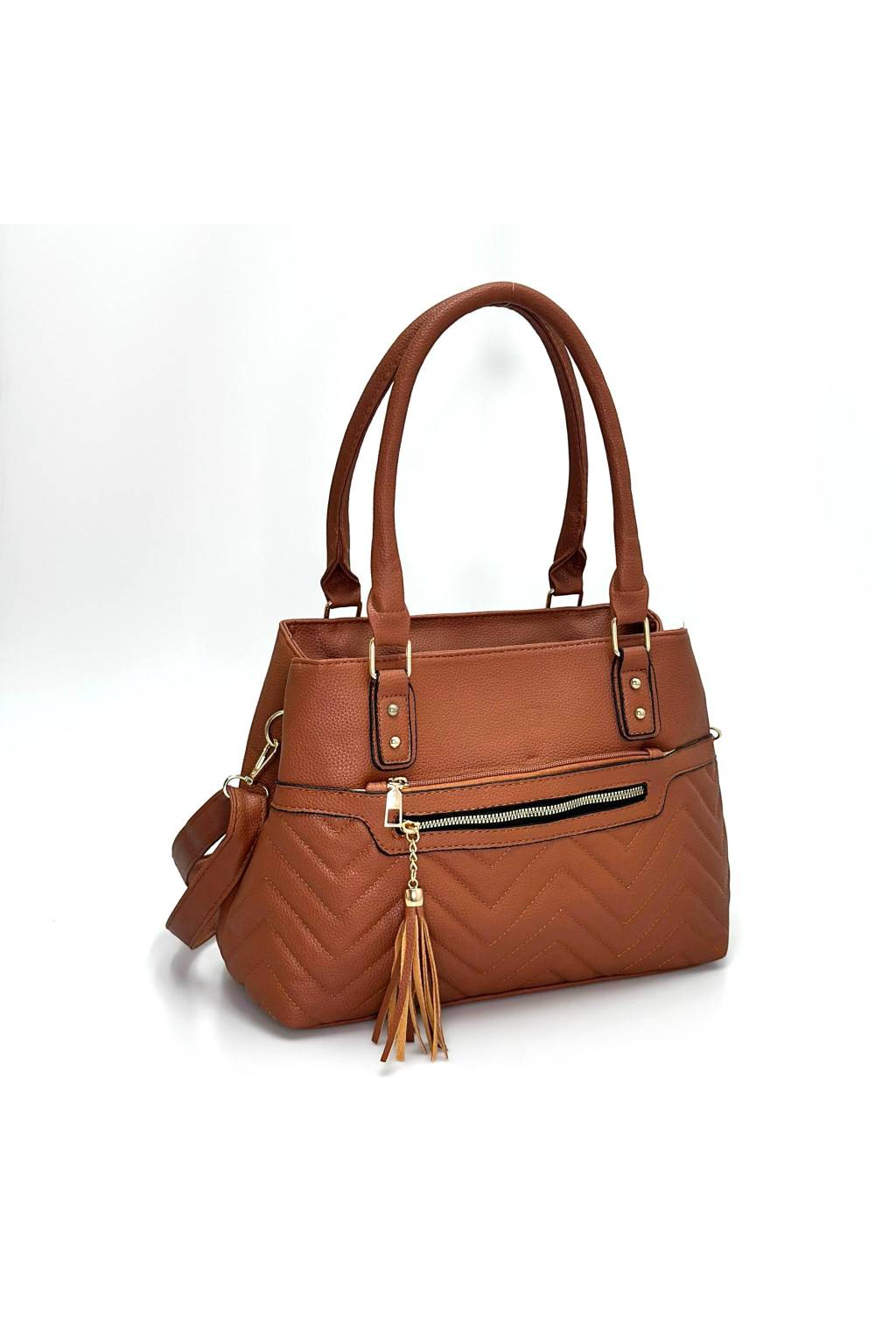 Elegantní městská kabelka s čistými liniemi a ozdobným třásněm, která dobře drží tvar a nosí se pohodlně na rameni i crossbody. Univerzální model na každý den – do práce, na kávu i na nákupy.