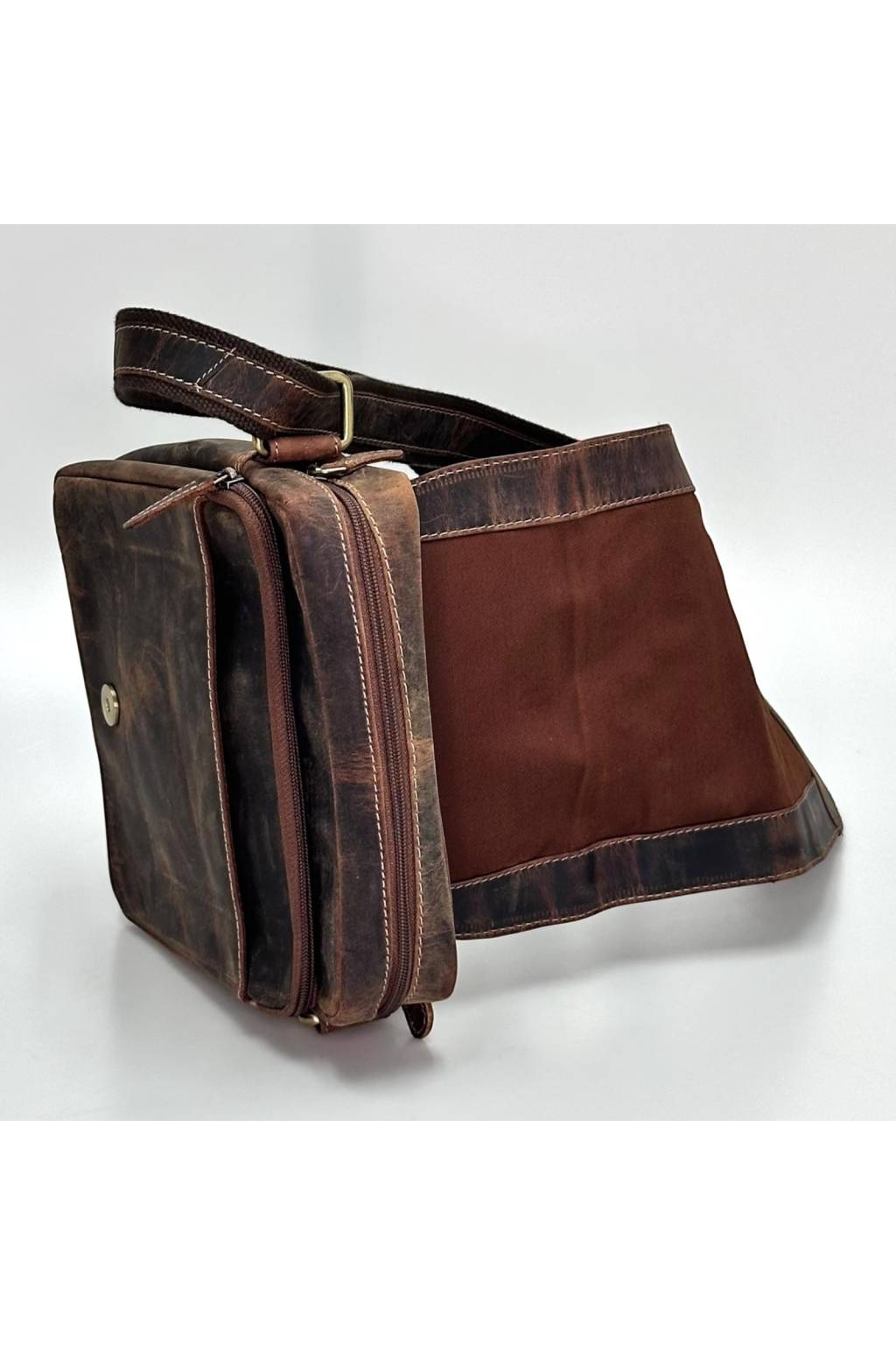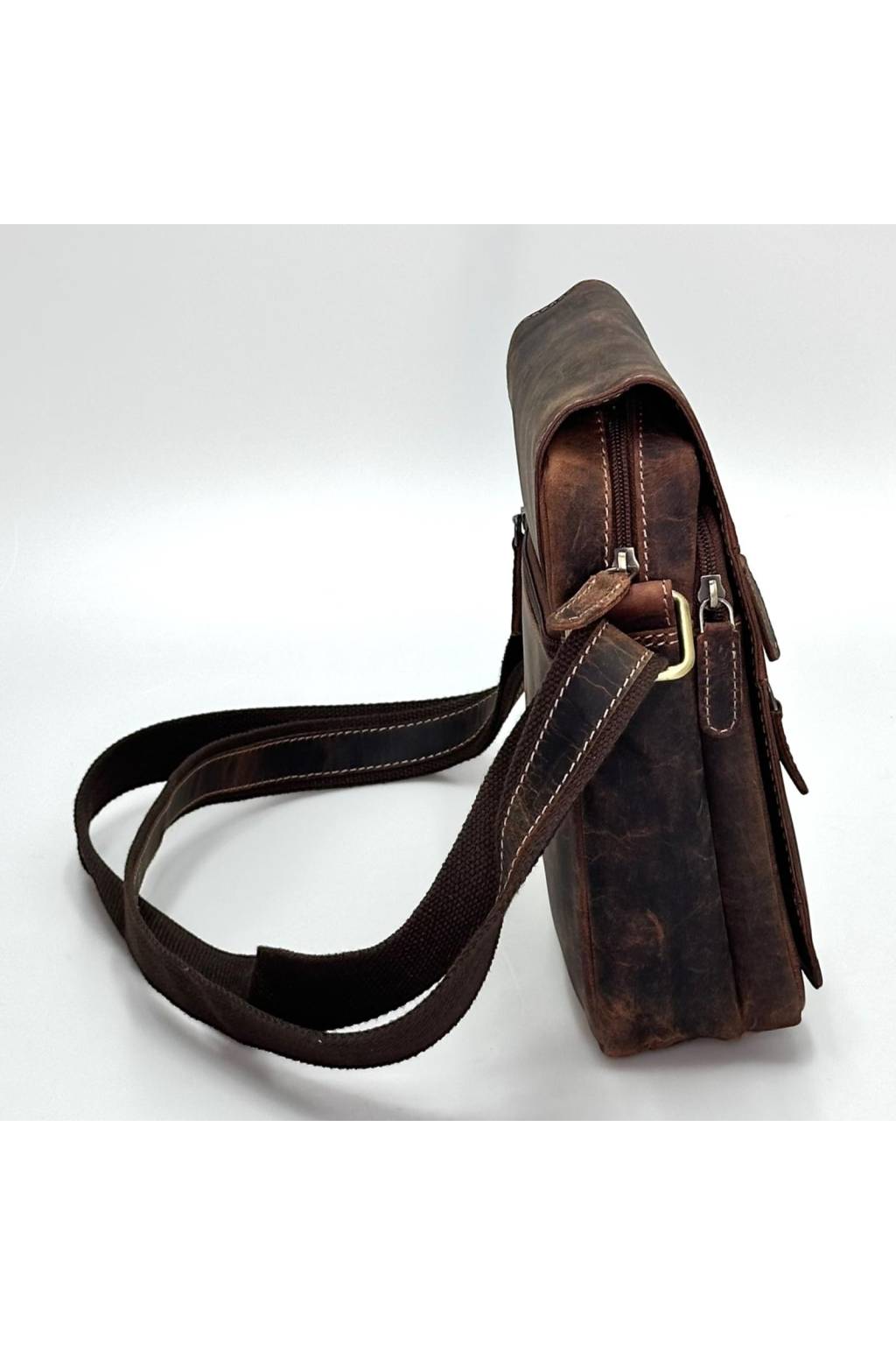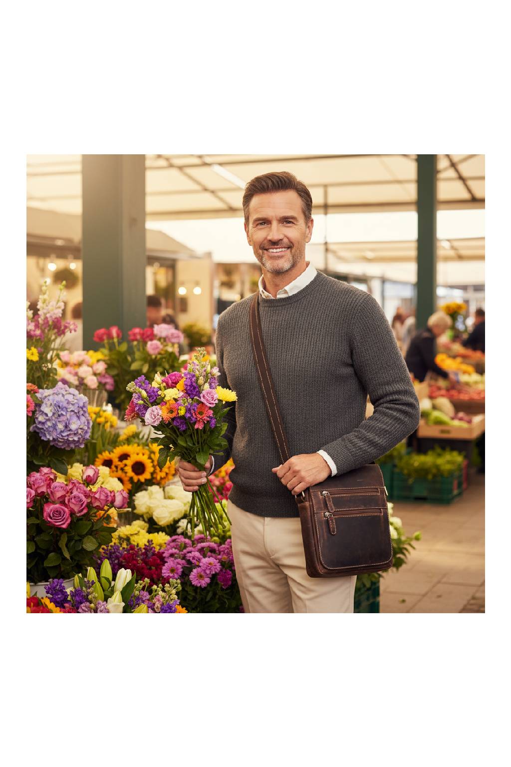 Stylová pánská crossbody taška v retro „crazy horse“ vzhledu. Ideální do práce, do města i na cesty. Přehledně členěné kapsy udrží telefon, peněženku, klíče, doklady i menší tablet (~10") v bezpečí. Širší nastavitelný popruh s koženým páskem se nosí pohodlně celý den.