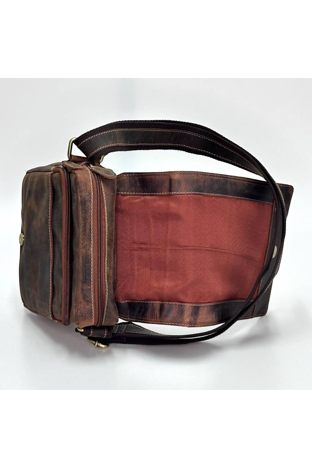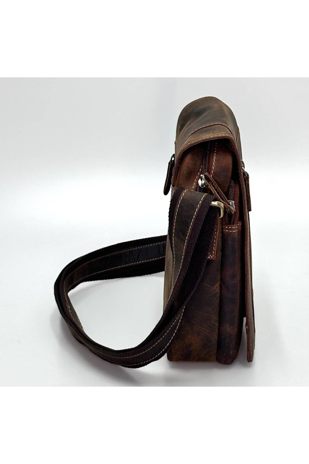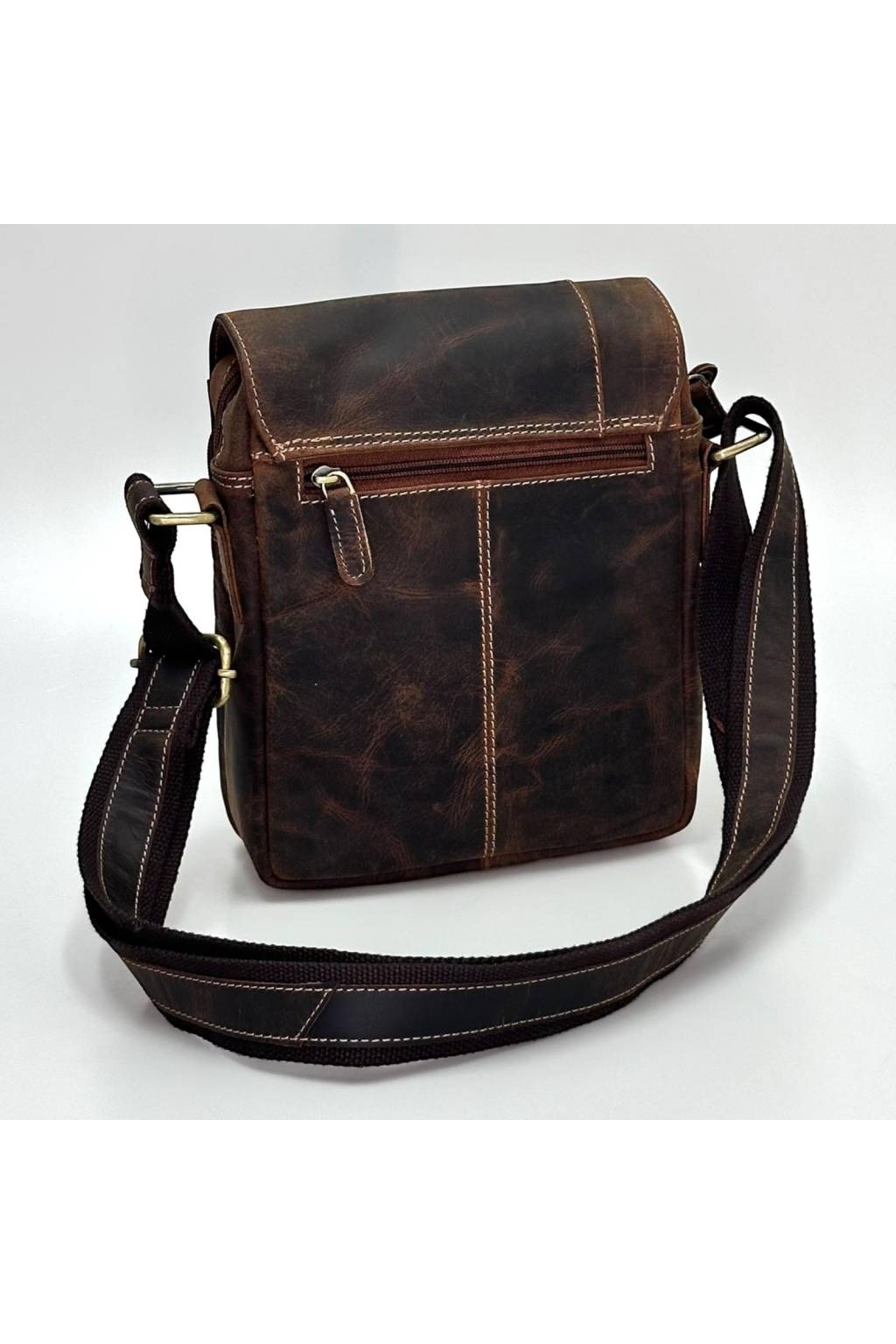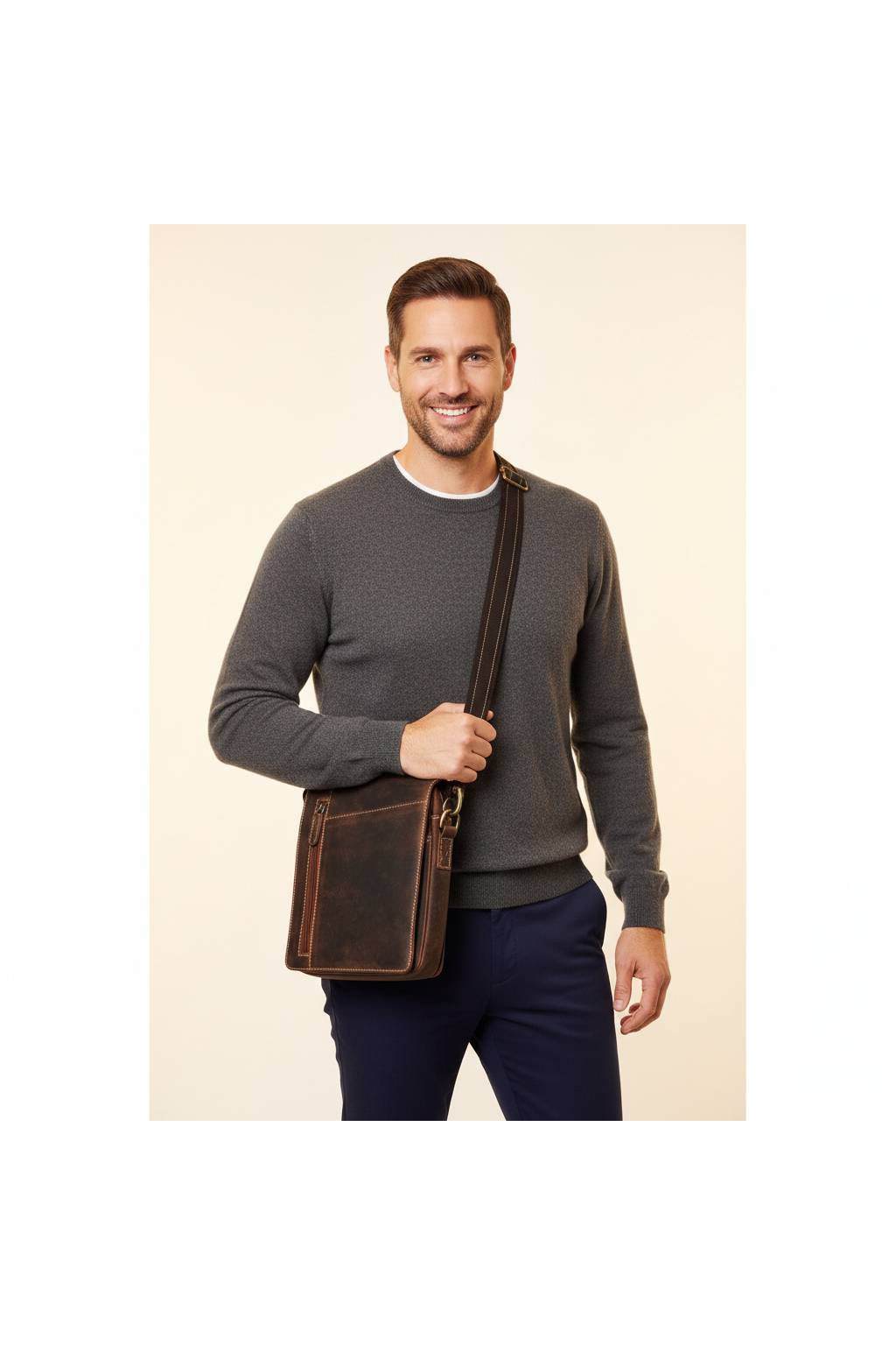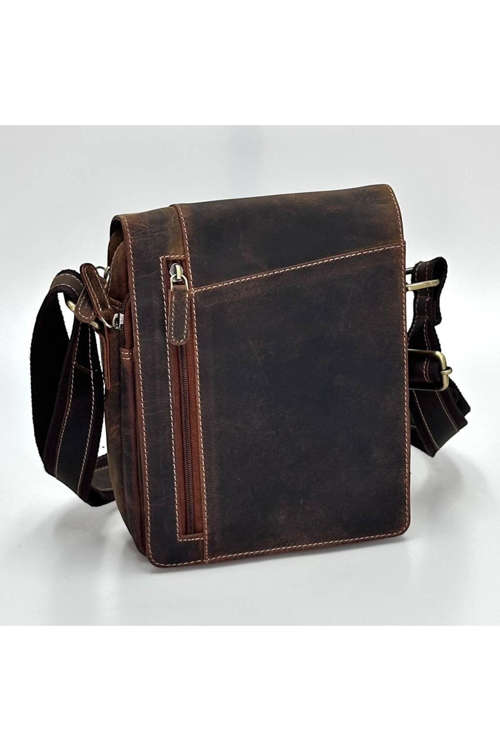 Stylová pánská crossbody taška v retro „crazy horse“ vzhledu. Ideální do práce, do města i na cesty. Přehledně členěné kapsy udrží telefon, peněženku, klíče, doklady i menší tablet (~10") v bezpečí. Širší nastavitelný popruh s koženým páskem se nosí pohodlně celý den.