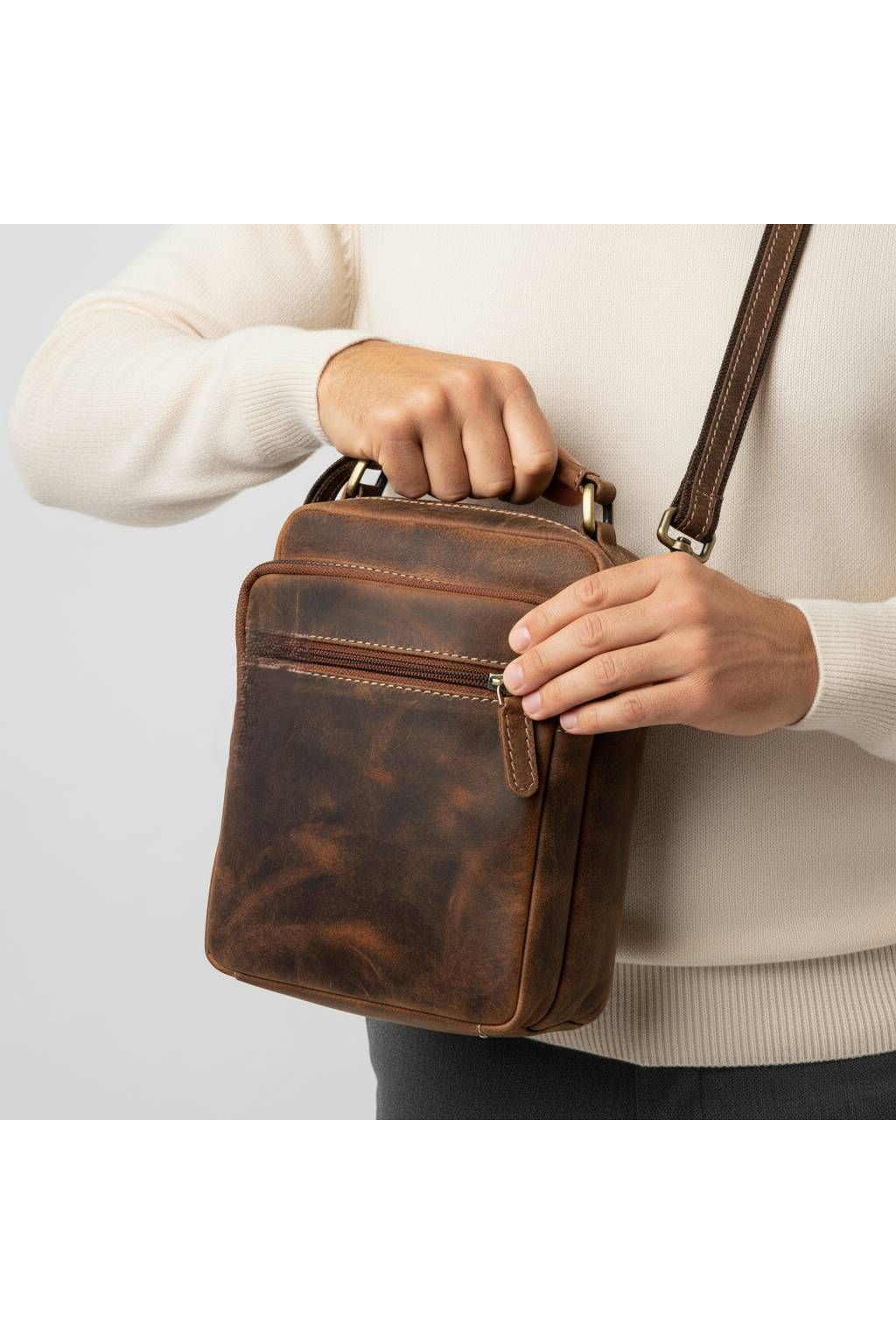 Elegantní pánská taška z pravé kůže v nadčasové úpravě „hunter/crazy horse“. Praktický městský formát, pevné zpracování a více kapes pro přehledné nošení dokladů, peněženky i mobilu. Ideální na každý den – do práce, do města i na cesty.