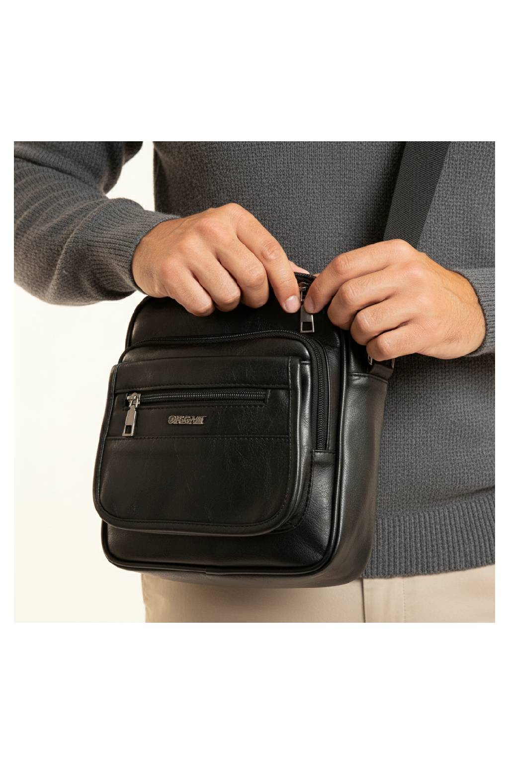Praktická městská crossbody taška pro muže, kteří chtějí mít mobil, peněženku, klíče i doklady vždy bezpečně po ruce. Nadčasový černý design, odolný materiál a promyšlená organizace kapes z ní dělají ideálního parťáka na každý den – do práce, do města i na cestování.