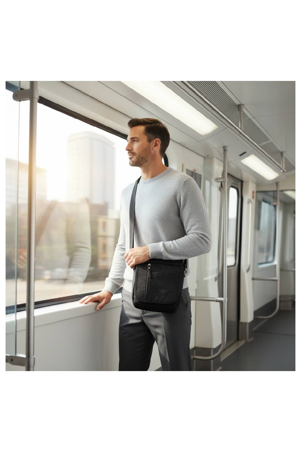 Stylová a praktická pánská crossbody taška z lehkého a odolného textilu (OR&MI) na každý den. Kompaktní rozměry se pohodlně nosí do města, do práce i na cesty – vejde se mobil, peněženka, klíče, doklady i powerbanka a vše zůstane přehledně oddělené v samostatných kapsách na zip.