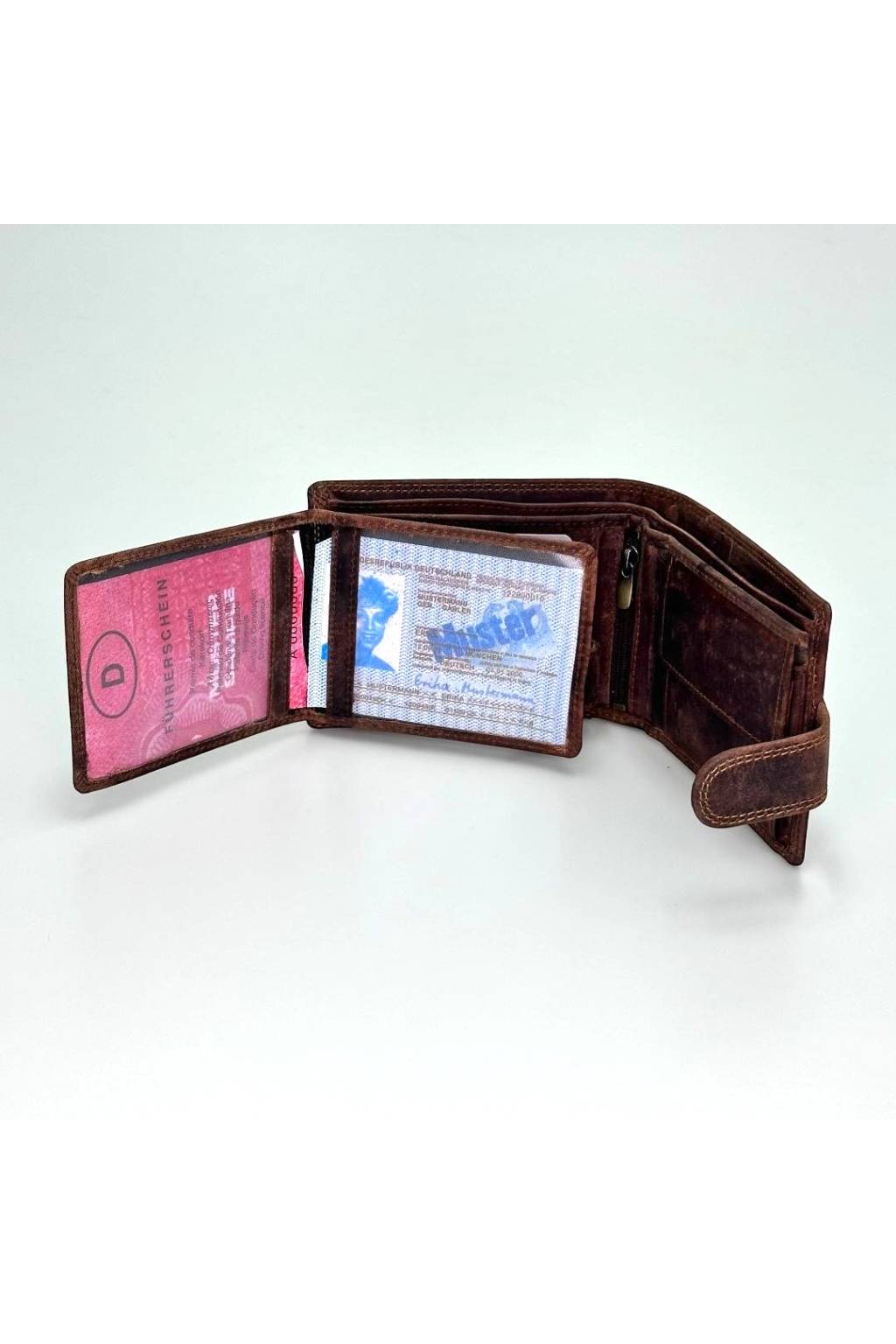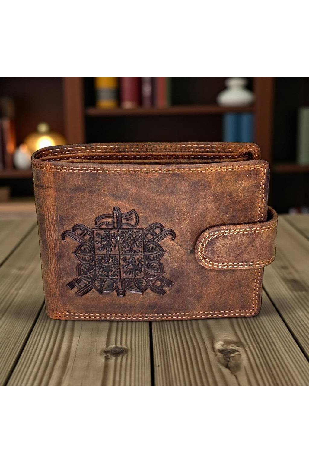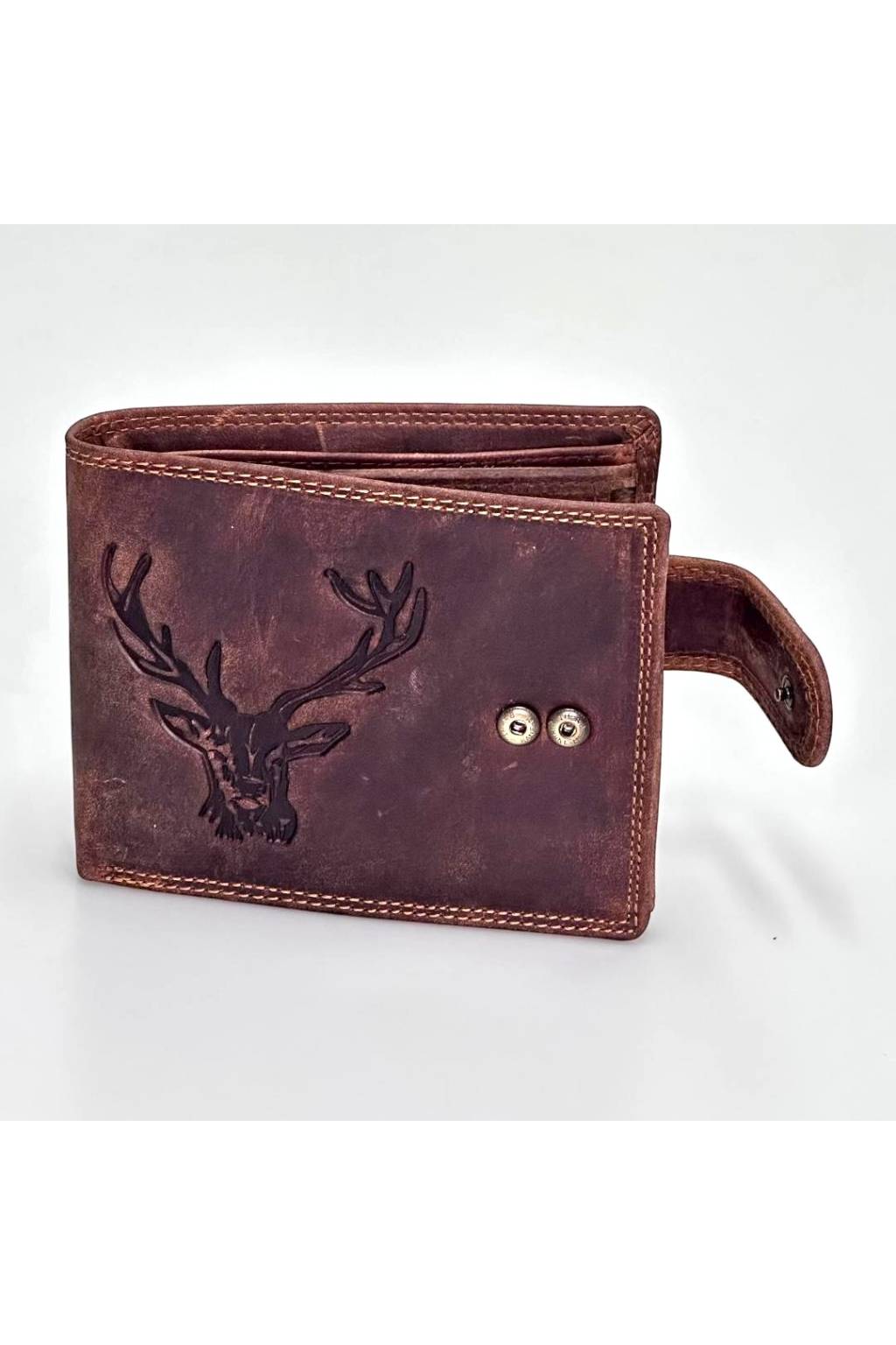 Rustikální pánská peněženka z pravé kůže se stylovým reliéfem (na výběr motiv rybář – pstruh, jelen nebo státní znak). Kontrastní prošití, přirozená patina a pevné kovové prvky z ní dělají odolný doplněk na každý den i skvělý dárek pro myslivce, rybáře či vlastence.