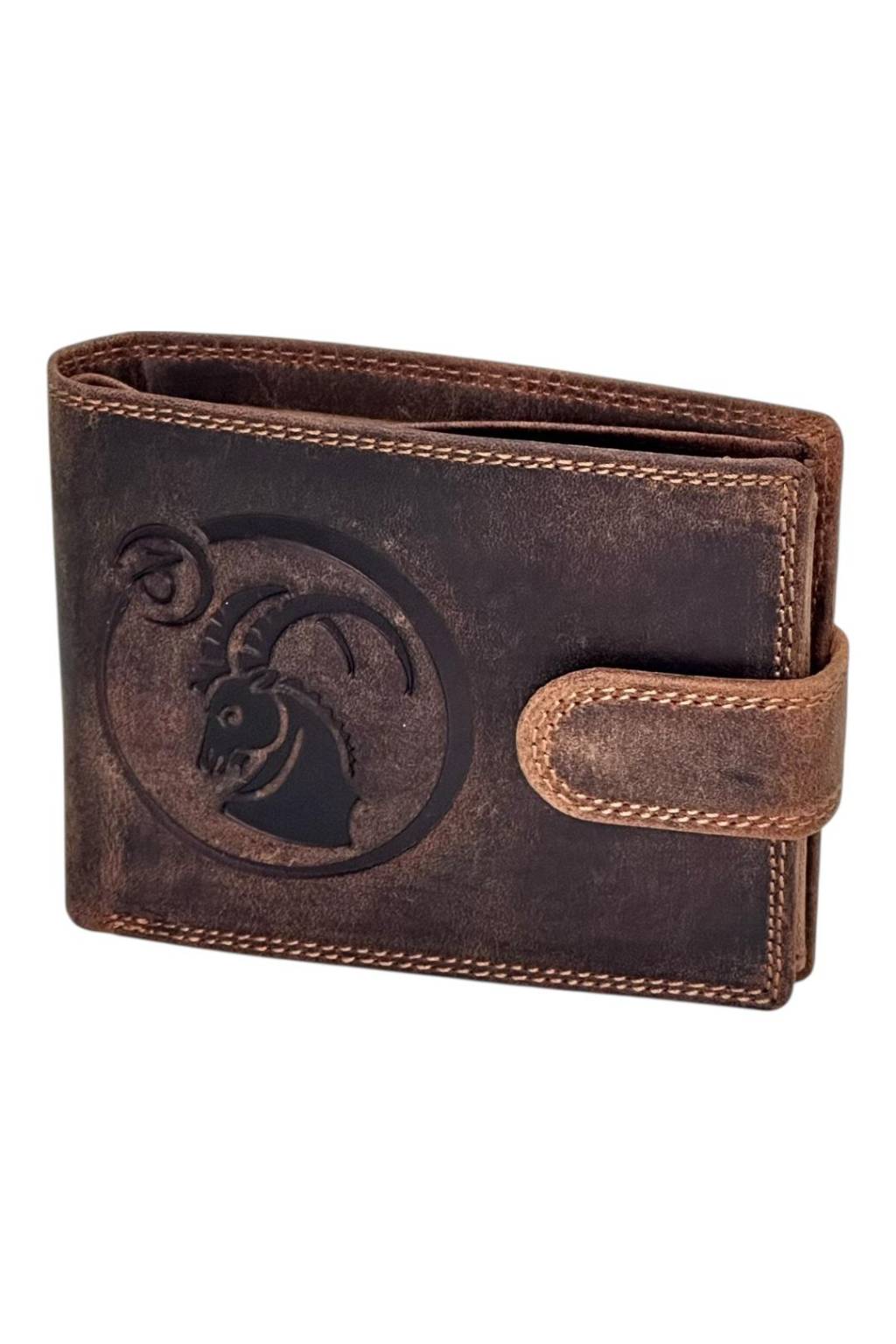 Pánská kožená peněženka – znamení Kozoroh,hnědá vintage, pravá kůže