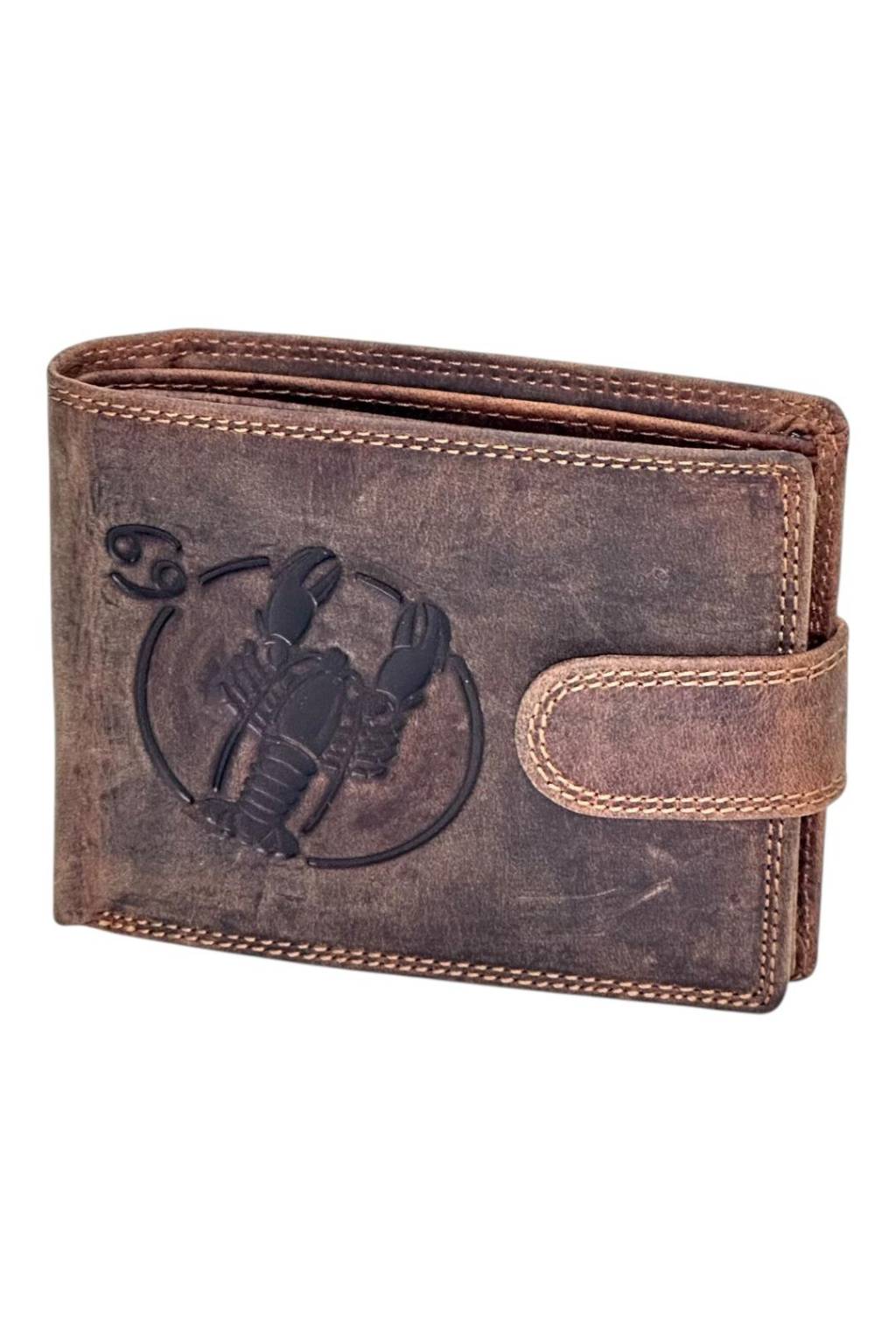 Pánská kožená peněženka – znamení Rak ,hnědá, pravá kůže