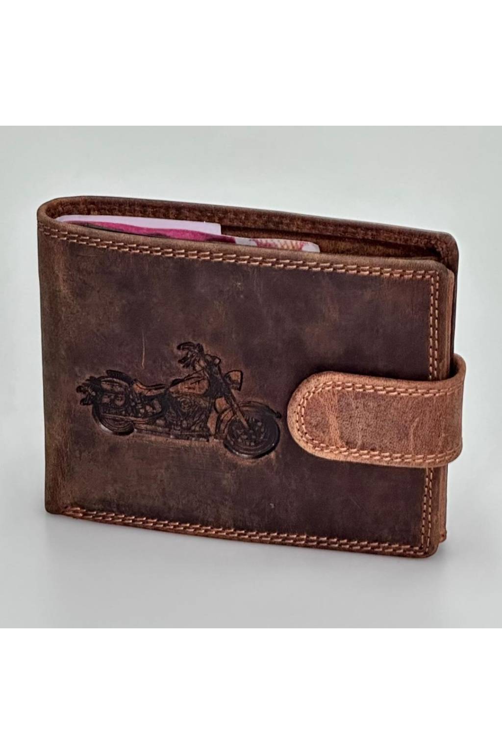 Pánská kožená peněženka hnědá s motivem motorky – pravá kůže