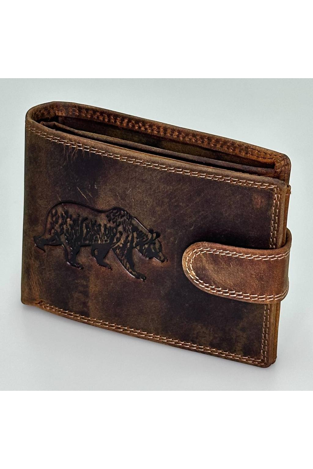 Pánská kožená peněženka s motivem medvěd – pravá kůže, hnědá