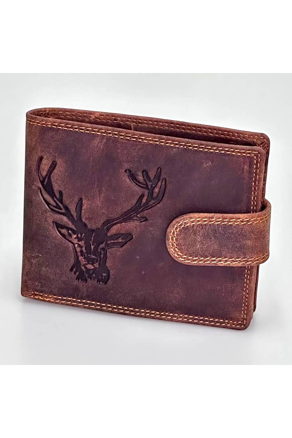 Elegantní pánská peněženka z pravé hovězí kůže ve stylu Crazy Horse s výraznou patinou a kontrastním prošitím. Přední stranu zdobí kvalitně lisovaný 3D motiv (traktor, jelen nebo medvěd) – ideální pro milovníky venkova, myslivce i přírody. Zapínání na bezpečný patent, uvnitř promyšlená organizace na karty, mince i bankovky.