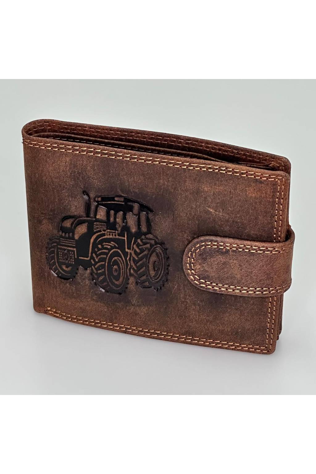 Pánská kožená peněženka s motivem traktor – pravá kůže, hnědá