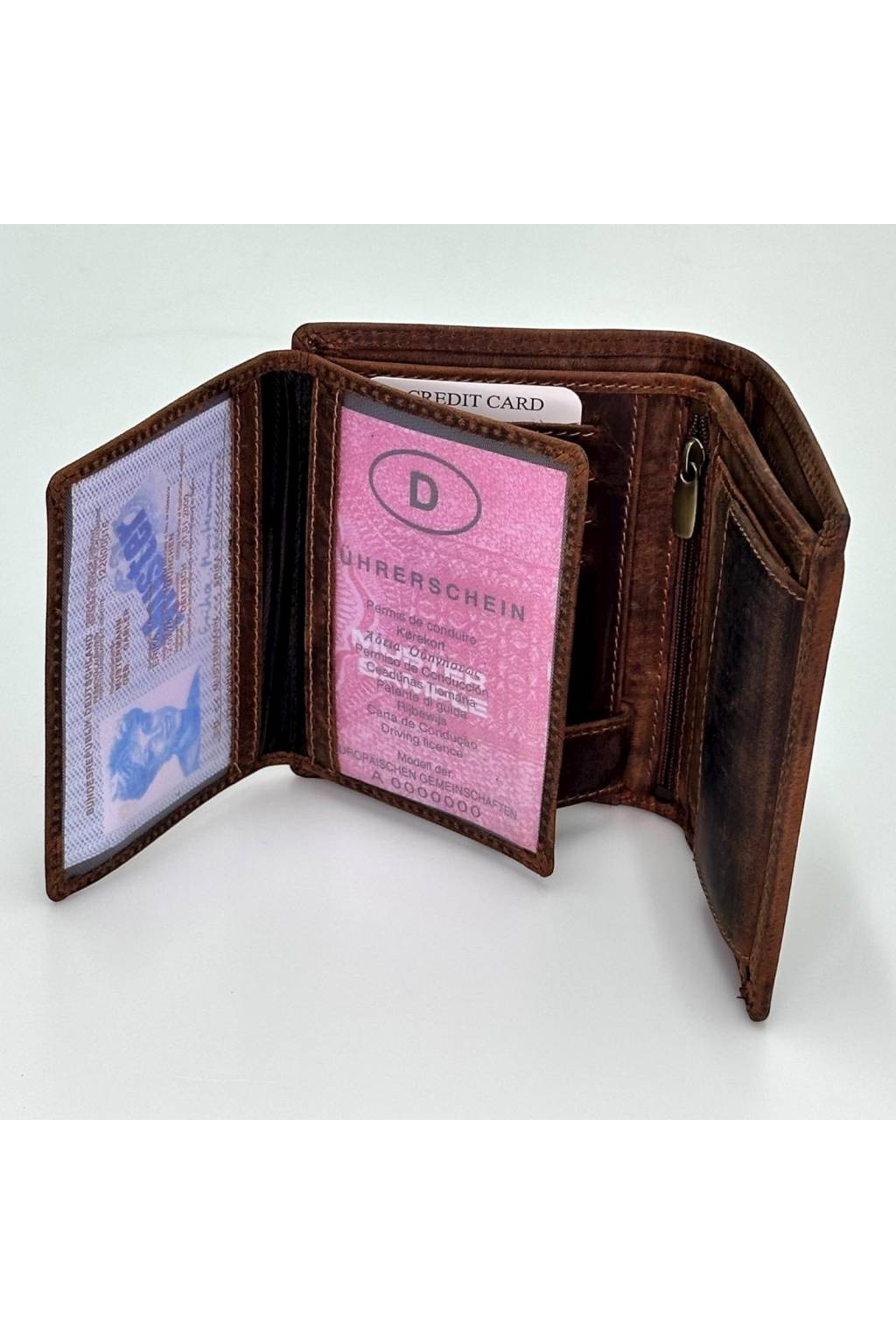 Elegantní pánská peněženka z pravé hovězí kůže ve stylu „crazy horse“. Vertikální formát, kapsa na mince, dvě přihrádky na bankovky, vložka na doklady s okénky a mnoho slotů na karty. Odolná, nadčasová a ideální na každý den.