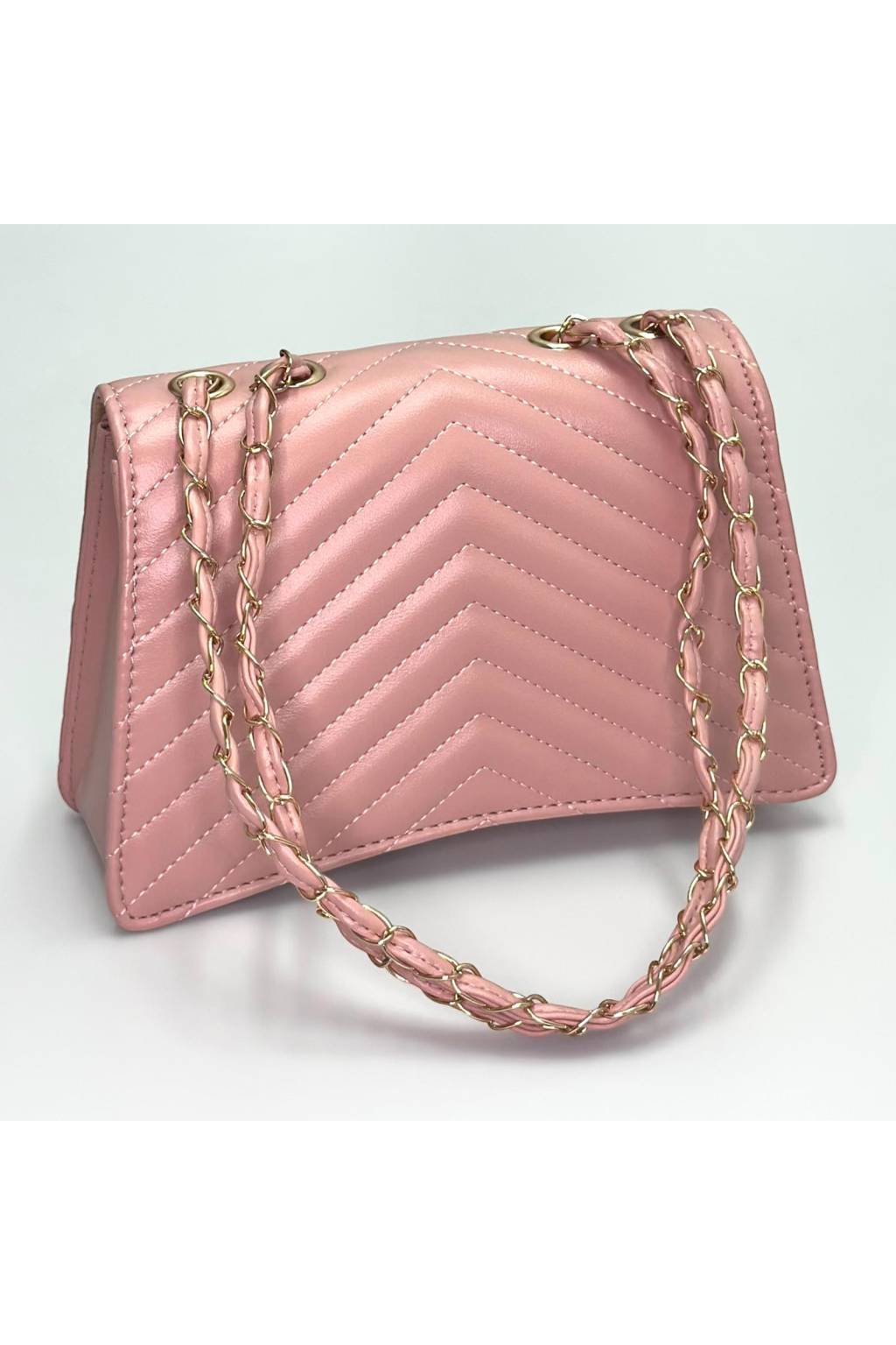 Společenská kabelka s řetízkovým popruhem S709 světle růžová